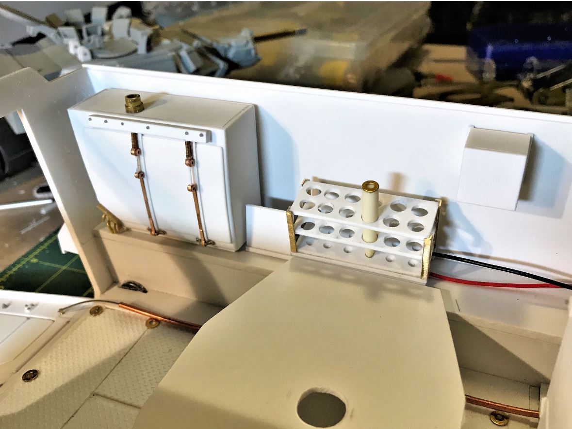 The angled ammo rack is temporarily in place. It will be given a full load of ammo.