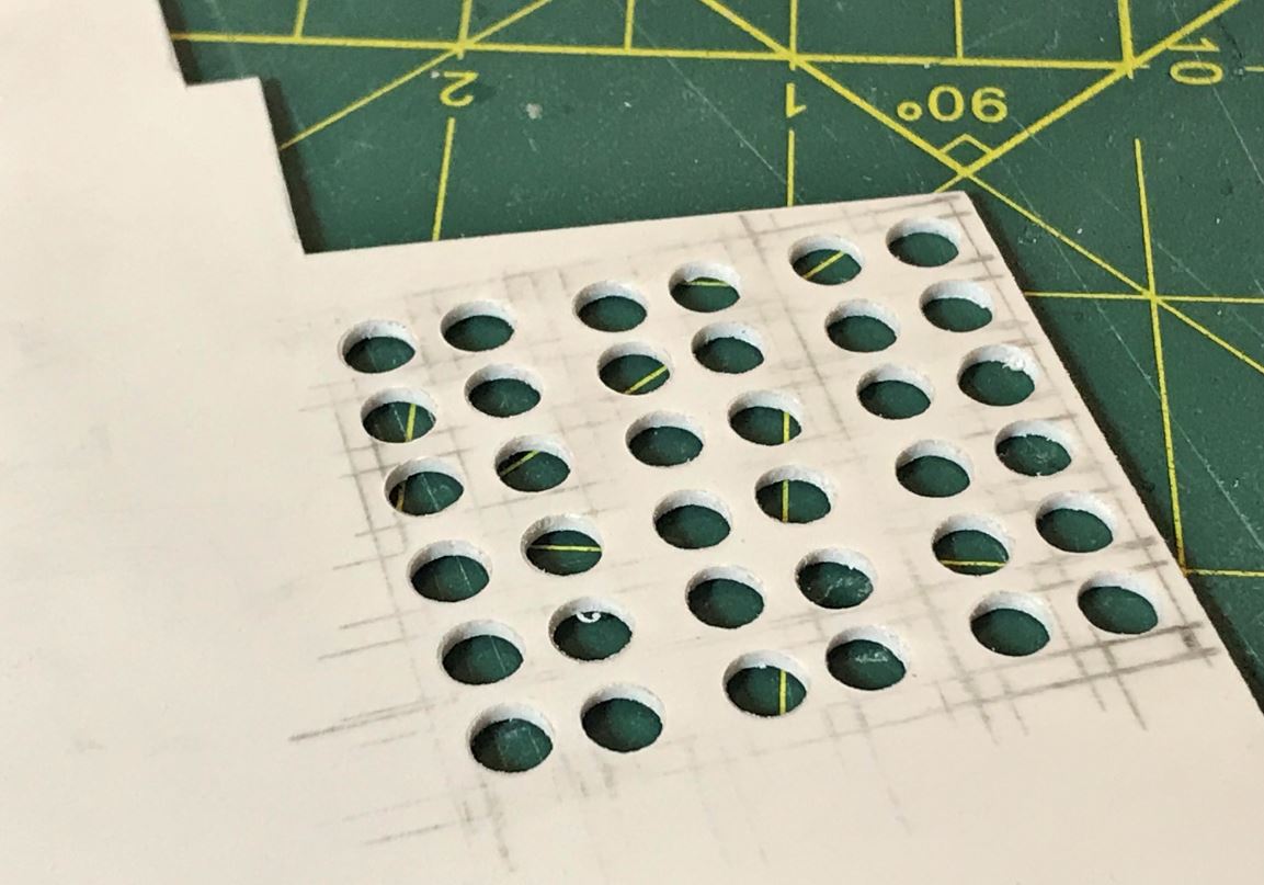 Although i need only 2 shelf layers with the holes for the shell, i made 3 then selected the best 2. A third shelf at the bottom only need to fit the ammo round tip.