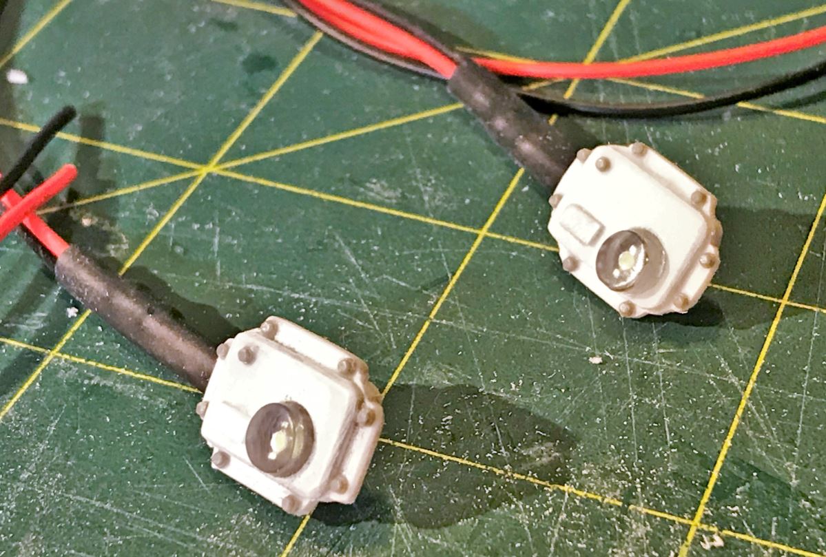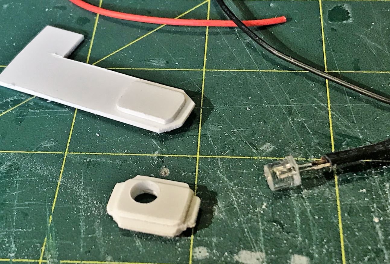 Two interior lights were scratchbuilt, this time using 5mm LEDs. I found that 3mm LED are not powerful enough.