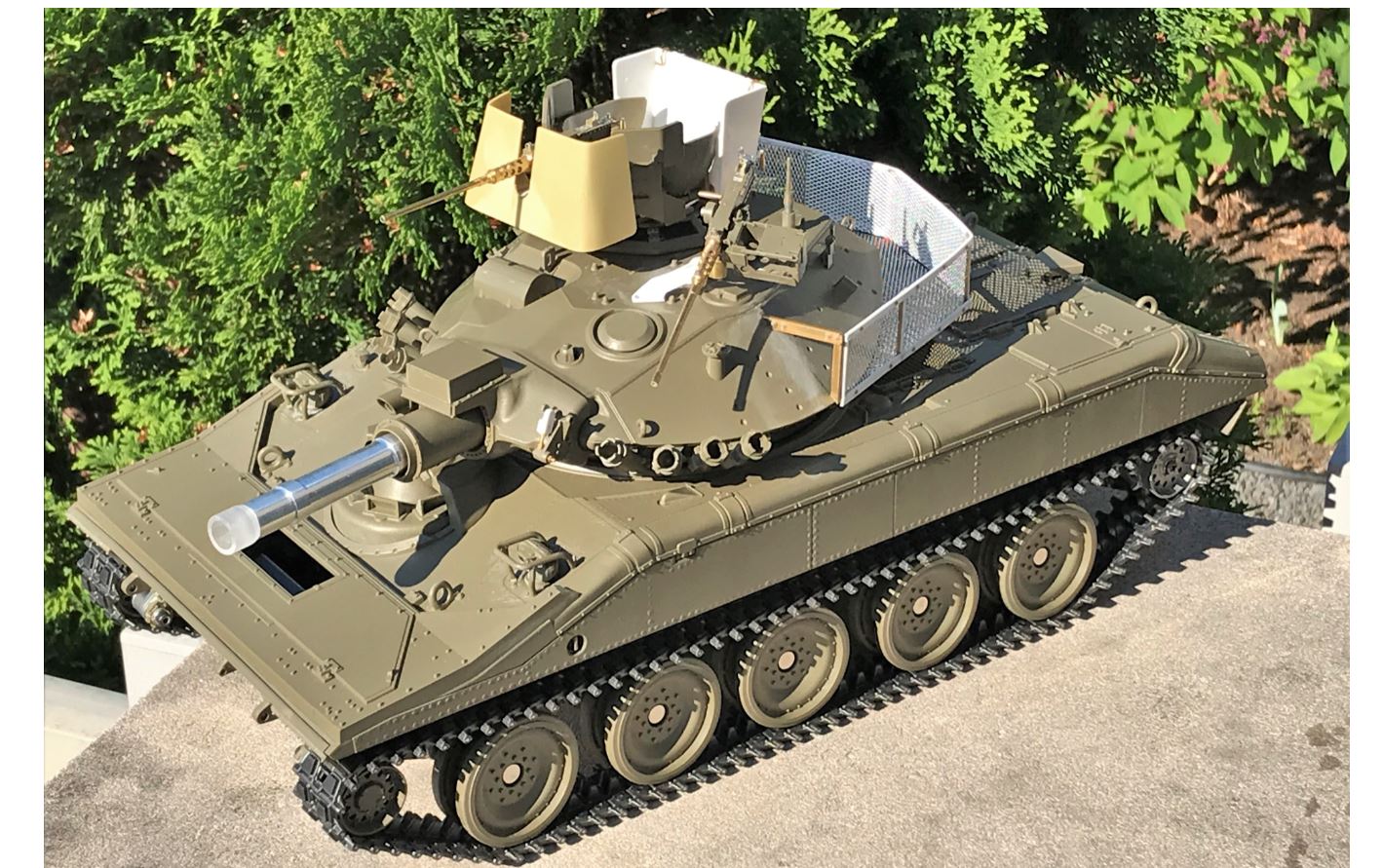 In the 1980s, the army equipped its Sheridan with a new standard basket, larger and solid. However, the modeller should not use this basket model for a Vietnam era vehicle.