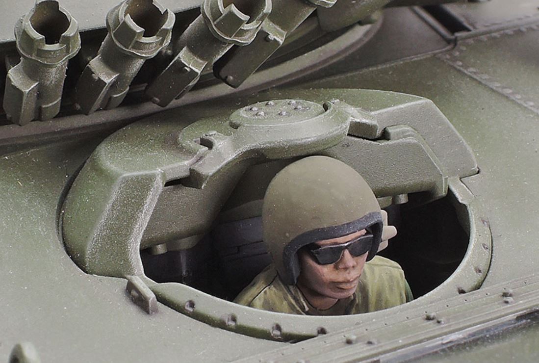 The commander is the same figure seen on the 1/35 kit version below. However, Tamiya did not provide the more interesting gunner figure on the 1/16 kit. It is unfortunate.