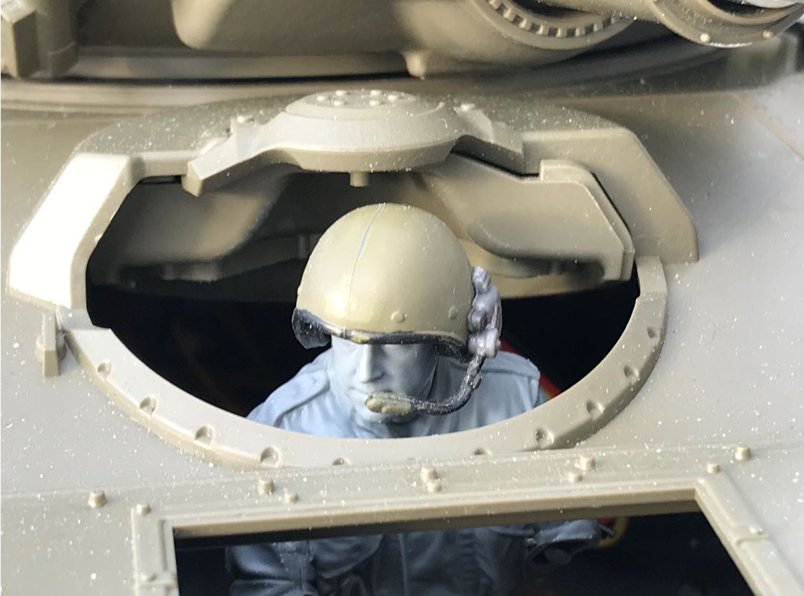 I will not use it for my commander. But I reuse the commander figure and gave it a 1/18 scale Ultimate Soldier US helmet. The helmet size is still ok, does not look out of scale. I did cut the arms to make it fit the driver's pit. There you go, driver now.