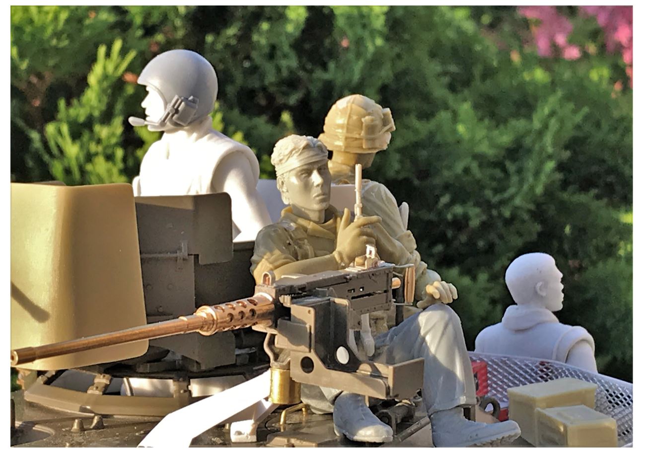 The gunner. I was inspired by the picture showing the gunner outside his turret and holding an M16. I also wanted a hippy look on my tank.