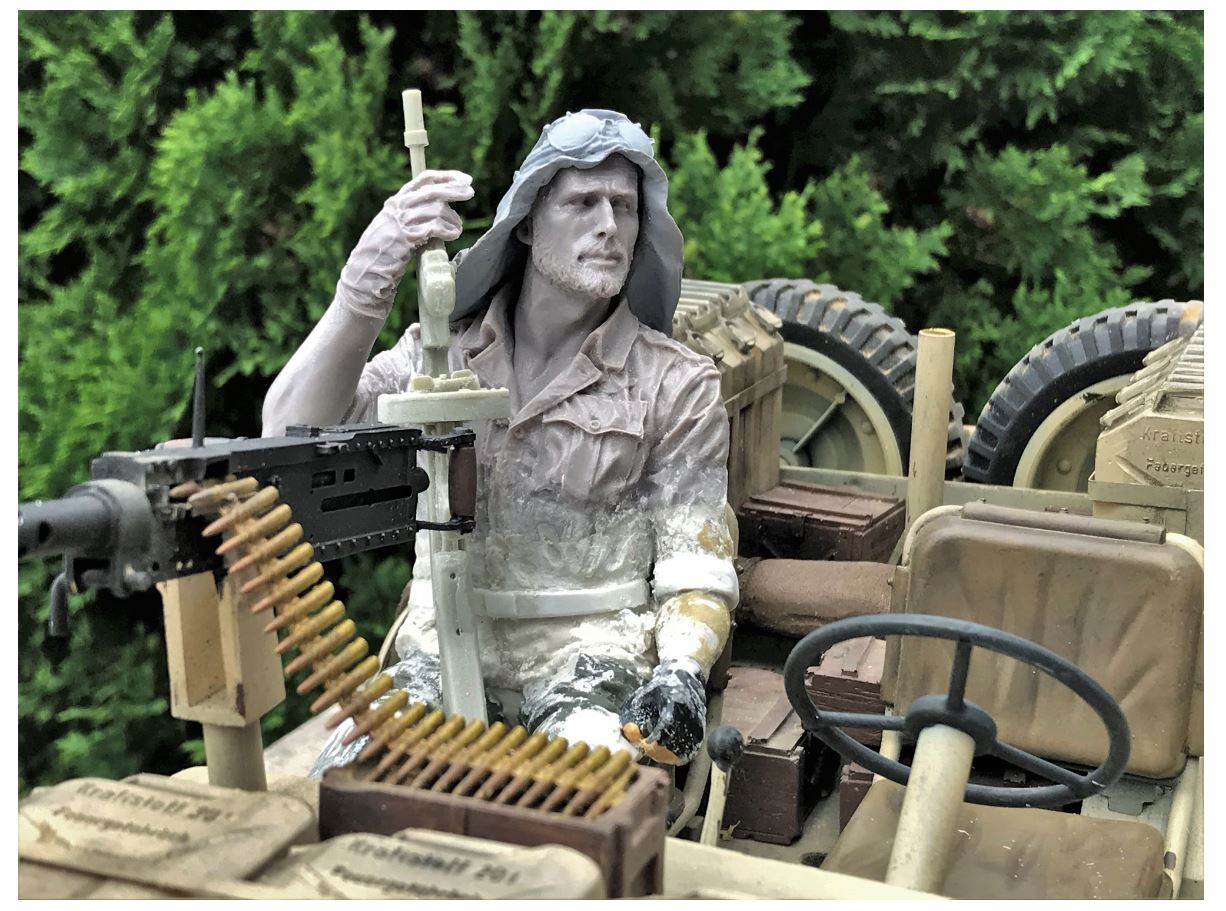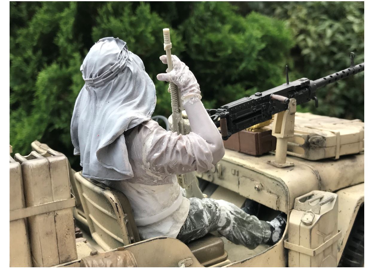 The figure is constantly checked for integration within the Jeep. The fragile 3D printed Vickers mount is removed for the purpose. The figures shall look good once i am finished with them.