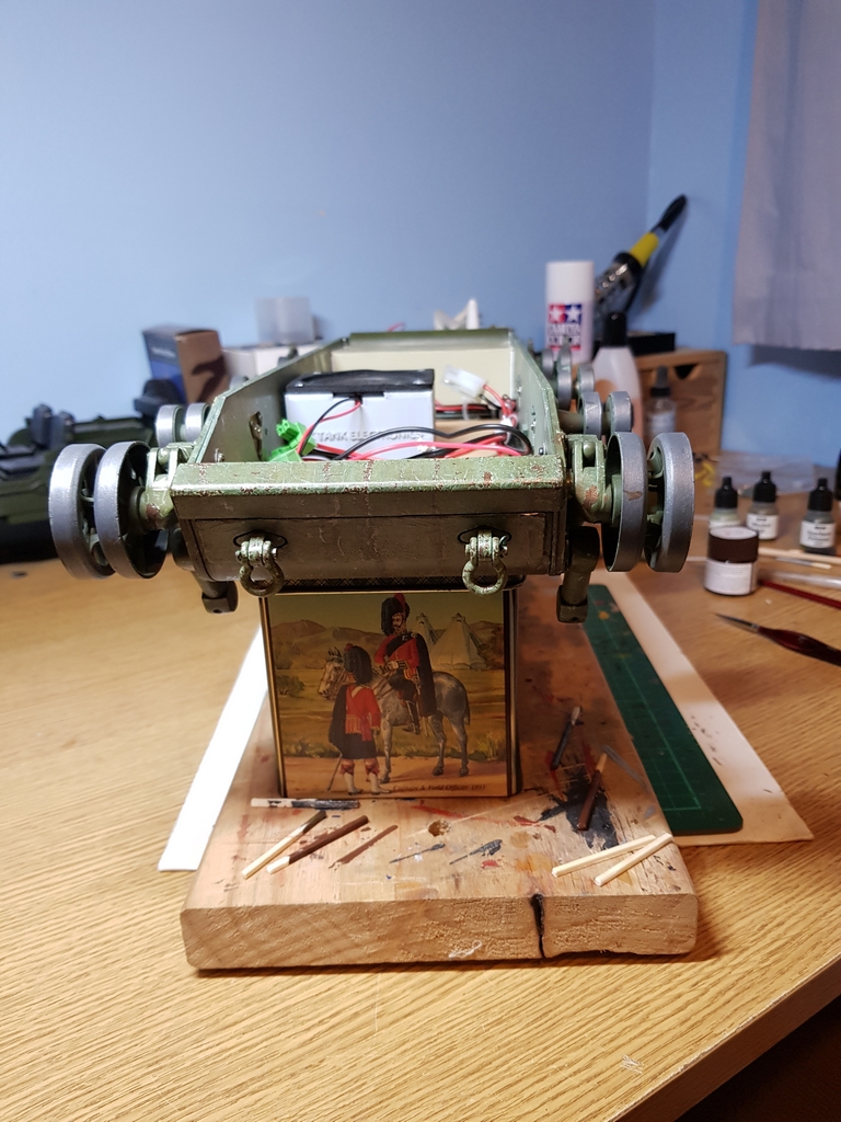 Glad your enjoying the build herr doc . And Marco Peter , I have only gone round the edges with light green so far, it just the first stage of scratches. Next I will go back round the light green with a mix of brown and gun metal , then when dry rub the edges with a pencil. I will post more pics when I get time ..Updates soon, thanks for watching.