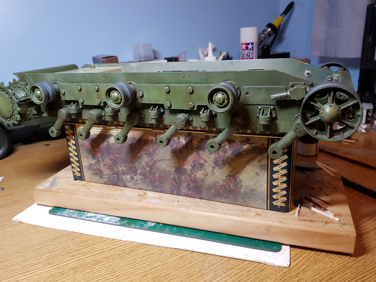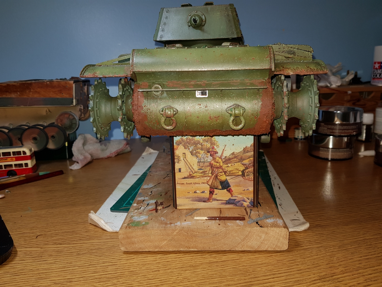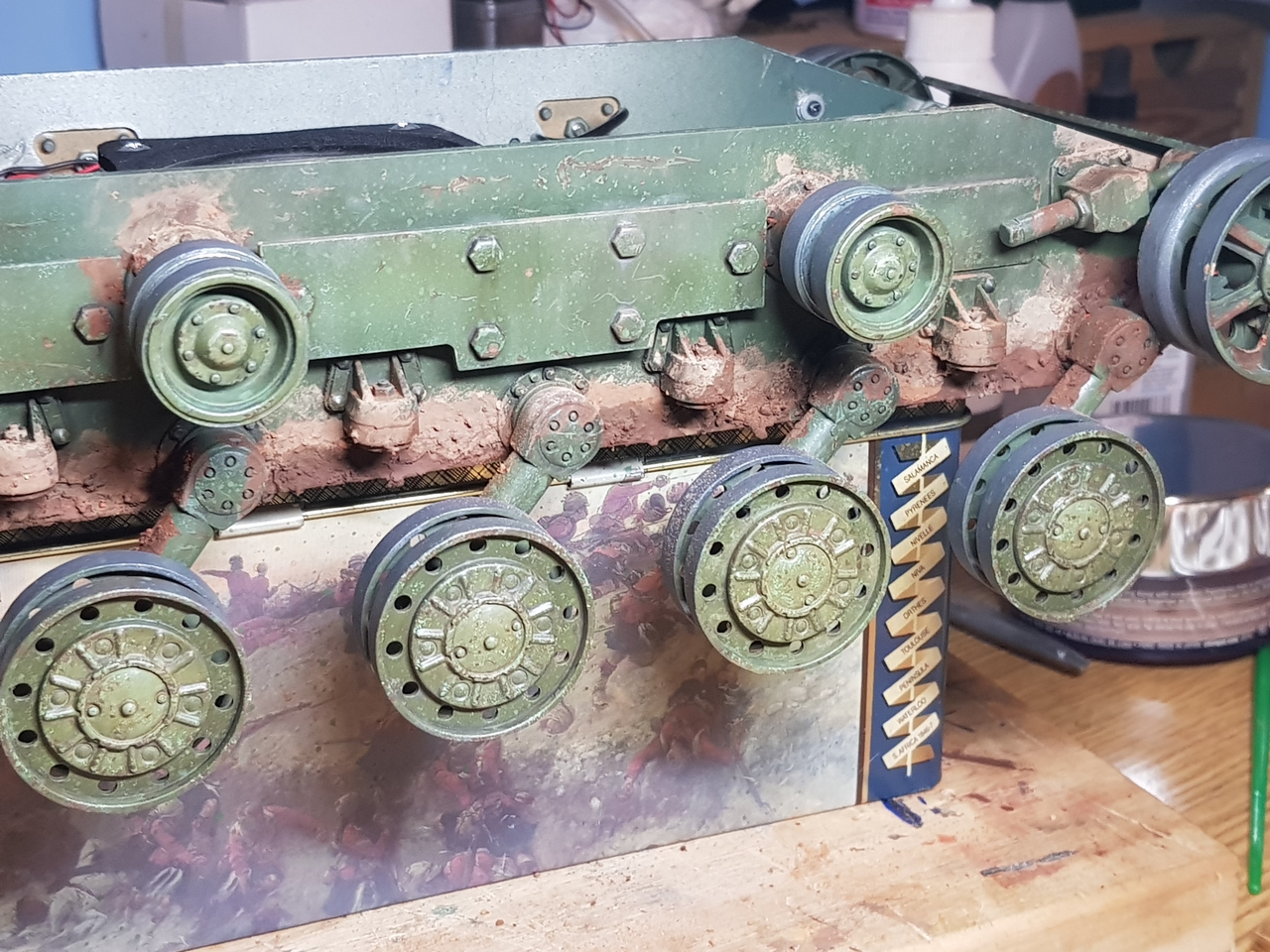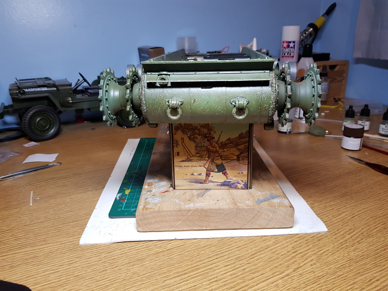 Tracks back on , and machine guns dry brushed gun metal , and I shortened the torro tow cables , although I like the schumo tow cables better, these will do for now , maybe 1 day i will treat myself .