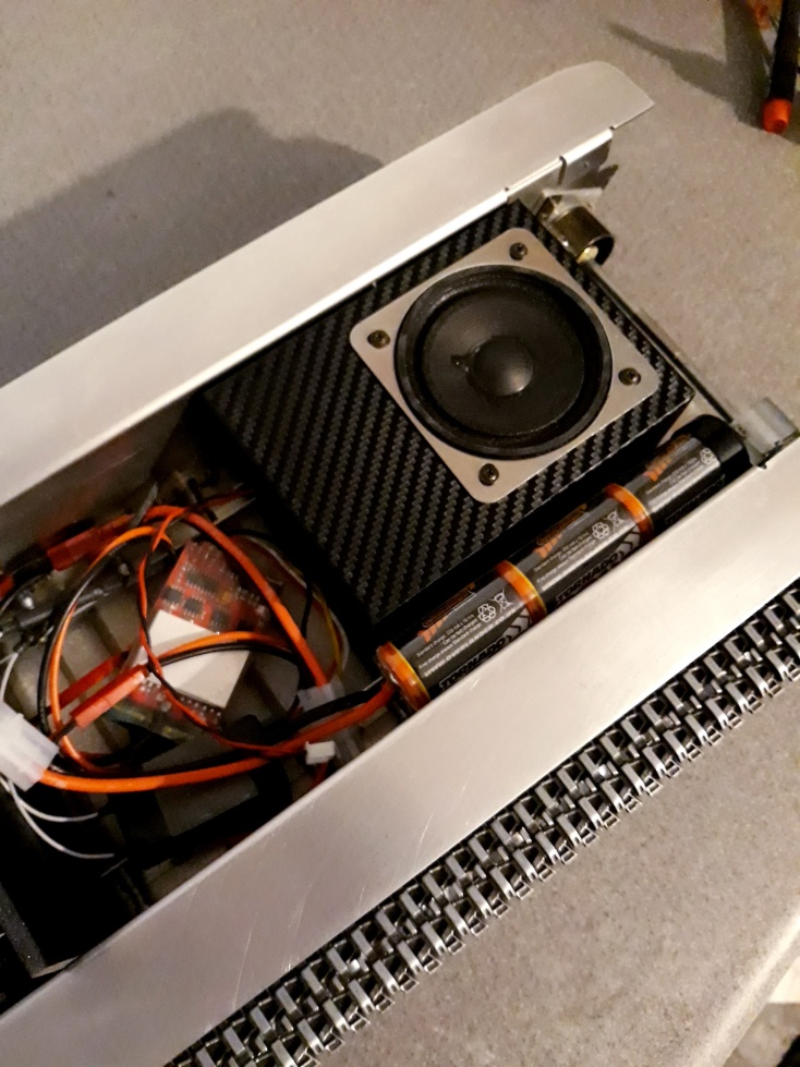 Today I made a speaker box and tested out the lights. All looks good for wiring up once I fit the slip-ring, etc.