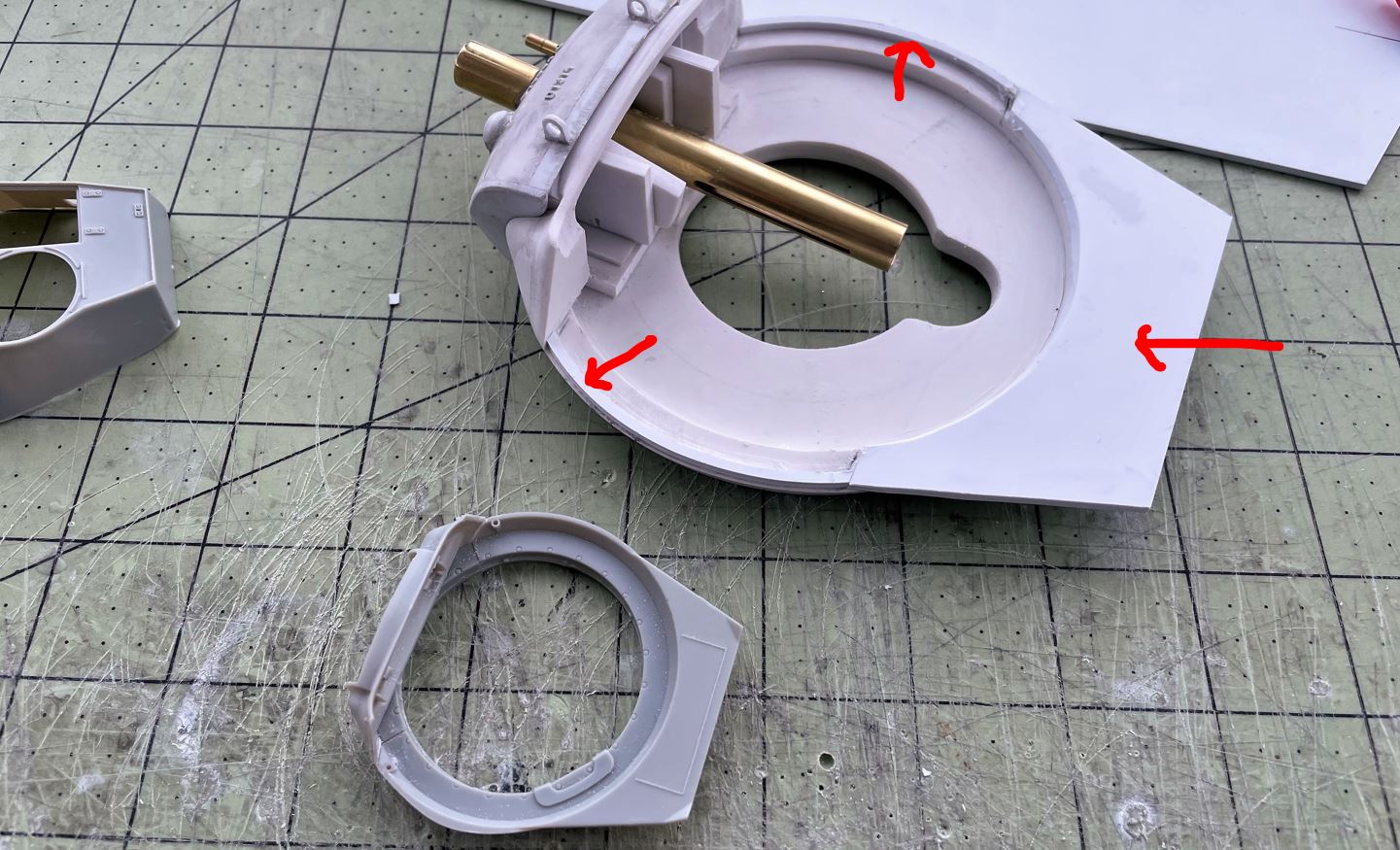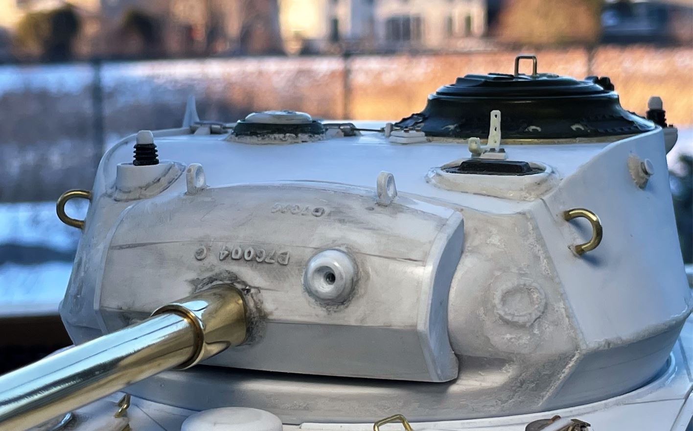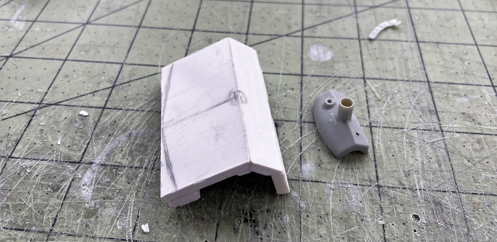 An hour later with some Dremel time outside, this is the mantlet with the 4 layers. It is slowly taking shape, always comparing to the 1/35 and test fitting it with the turret mount.