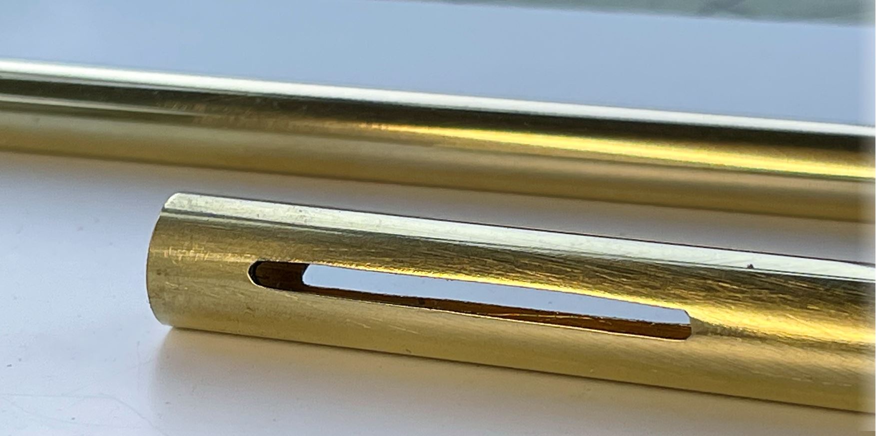 Before continuing on the mantlet, i needed to create the gun. These are the 2 main components; 1 thick wall 8mm brass tube for the gun and 1 10mm brass tube for the sleeve and recoil mechanism. The walls are 1mm thick. Purchased for a few dollars from eBay China.