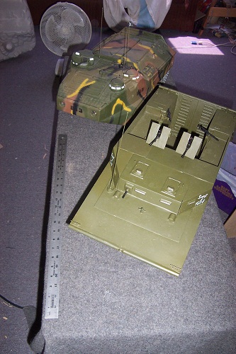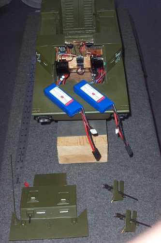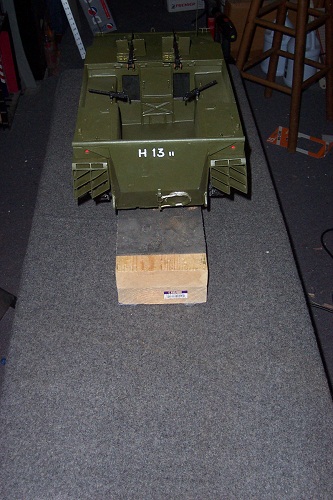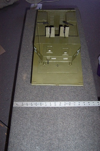 Andy, the .30 cal. MG's are mounted where the are supposed to be. One on each side and one in a ball mount in the front cab. They should be in the last set of pictures. I still have to detail everything, ammo boxes, sand, dirt, etc., etc. I am concentrating on getting all of the electronics adjusted and working out the operational bugs before doing that though.
