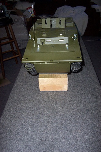 Well here it is Sunday AM and still have not had a chance to get to the creek. Last night I did add the front applique armor. I had cut it out earlier, but had not decided if I would put it on or not. I decided that since I have the armored cab I might as well add it also. I am not planning on adding the side sponson armor though. I tried to get some pictures of the lights working, but I think they are hard to see.