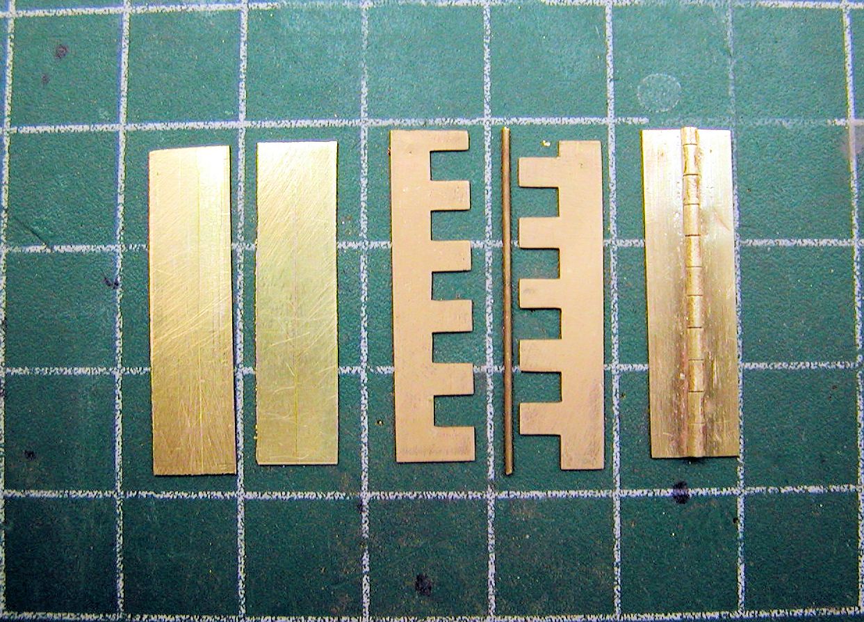 After looking all over I found hinges that were either too small or too large. I finally found one made by Dumas Boats that looked pretty much to scale but had the incorrect number of knuckles. I need 10 full knuckles plus one 1/2 length knuckle and it 7 + 1/2 when cut to needed length.
