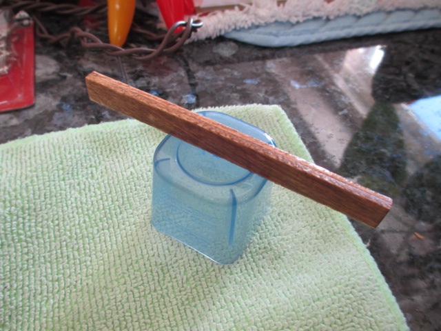Fresh cherry stain on the bow stowage plank