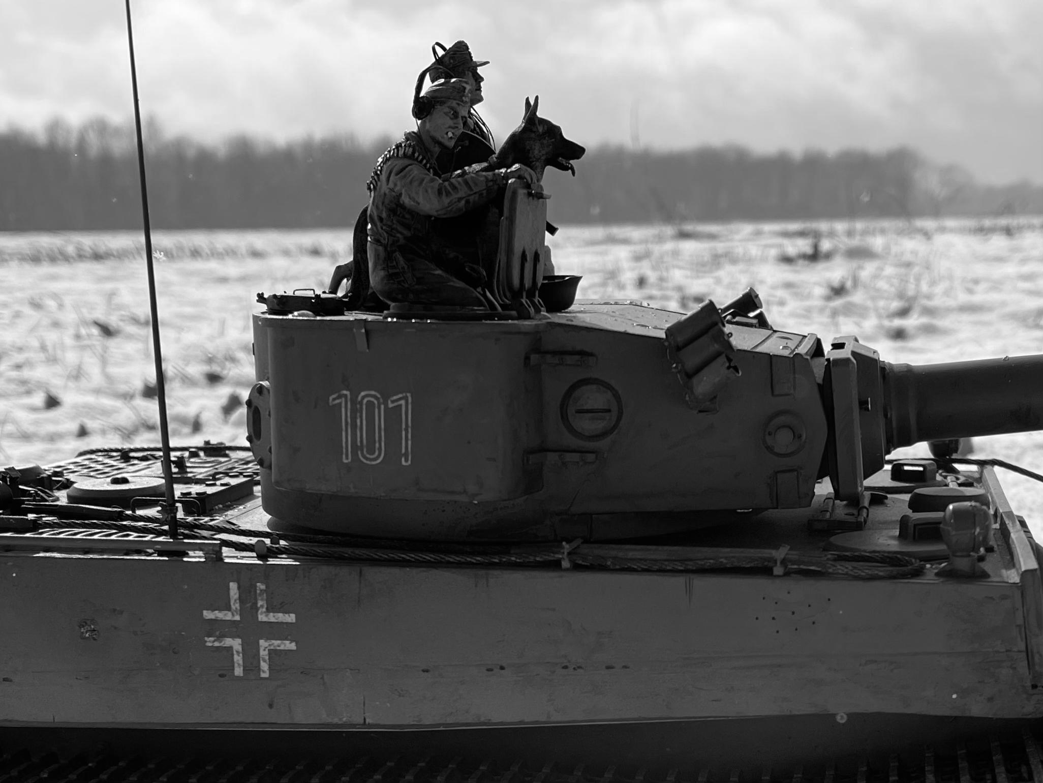 Seeing it again, and your broad expanse of snow ( or is it the Steppes?), reminded me of an observation made in 'Tigers in the Snow'. It's that tank riders weren't simply exposed to bullet splash and hostile cannon fire, no, they often died of carbon monoxide poisoning, from the invisible gasses coming up through the engine grills.