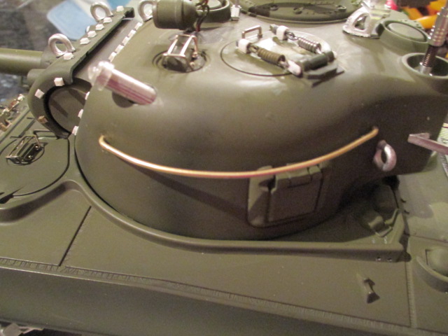 Those periscope guards are really something painless... now hedging... I put the ones Mike lent me on for a dry run... just to see if they would improve the look.. they really add to the profile of the tank....thing about it is... none of my others have such detail.... but they are still great looking... and don't look too difficult to make