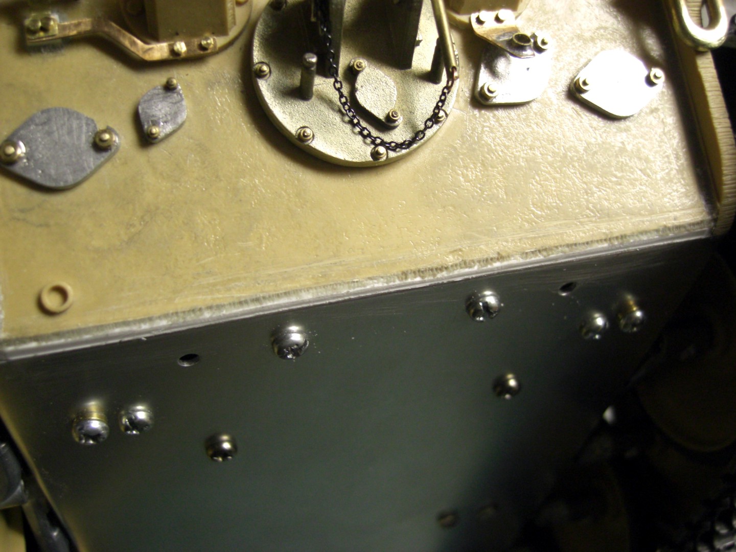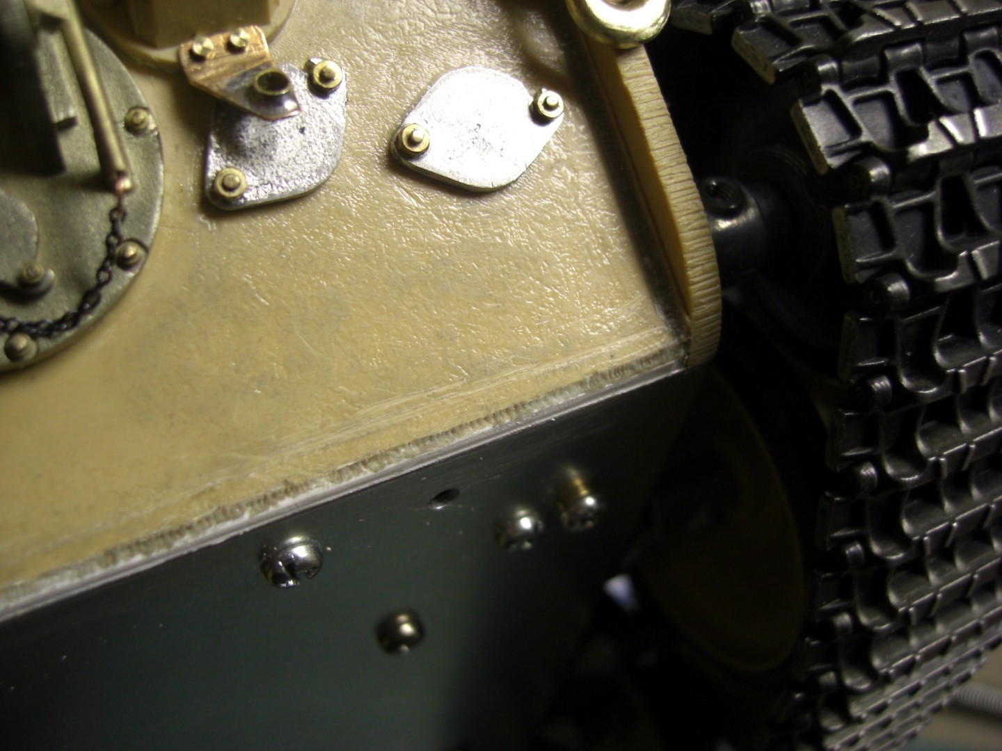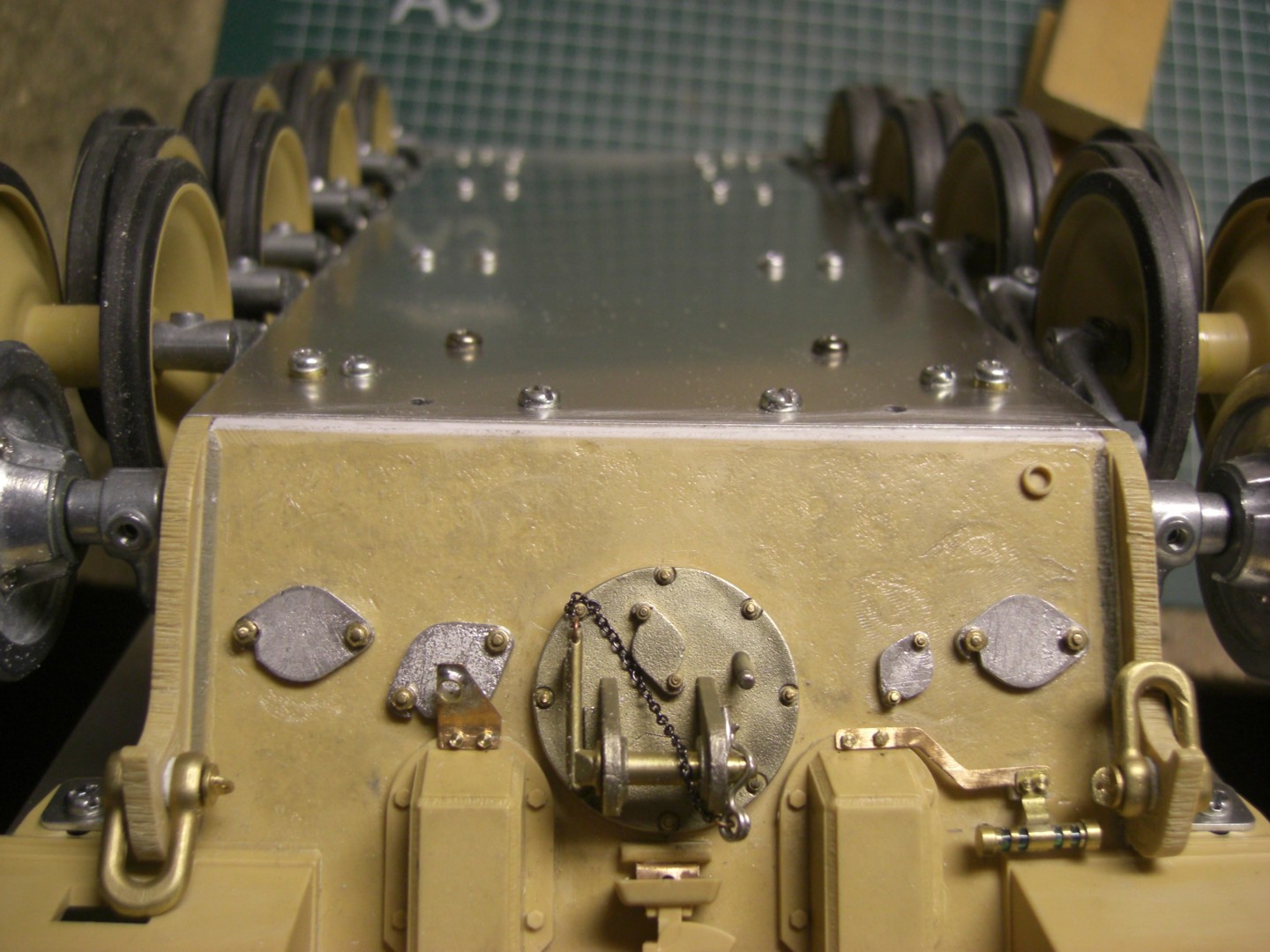 The small slot between the two front plates isn't very nice, let's see whether he's still there when the upper hull was screwed onto the lower hull in final position...