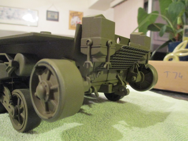 PainlessWolf wrote:Took some time this evening to put the lower hull back together and get ready to mount the new 2.4GHz set in it. The idlers were primered and painted. The bogies and road wheels received a couple of dusting coats as well to help them blend in with the Model Master shade of OD. They were already much better looking than the set they replaced. Pictures: