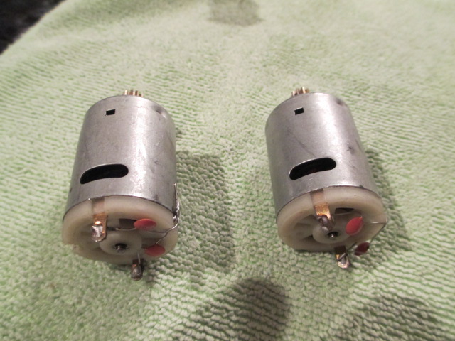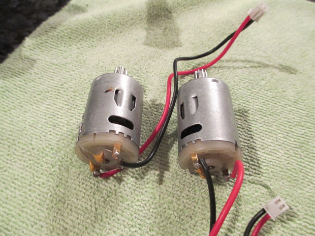 A new set of motors with proper two pin plugs set back from last year's gearbox swap out.