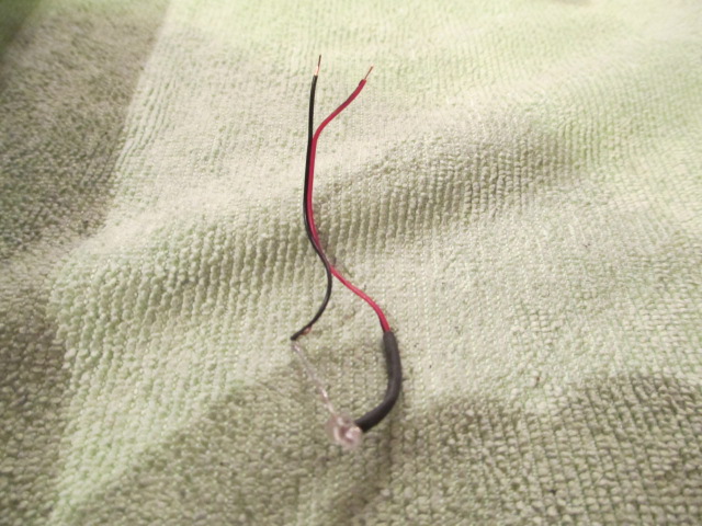 Closeup of the tail light wiring.  I had to mark positive and ground from the length of the led legs as it was all white wires.
