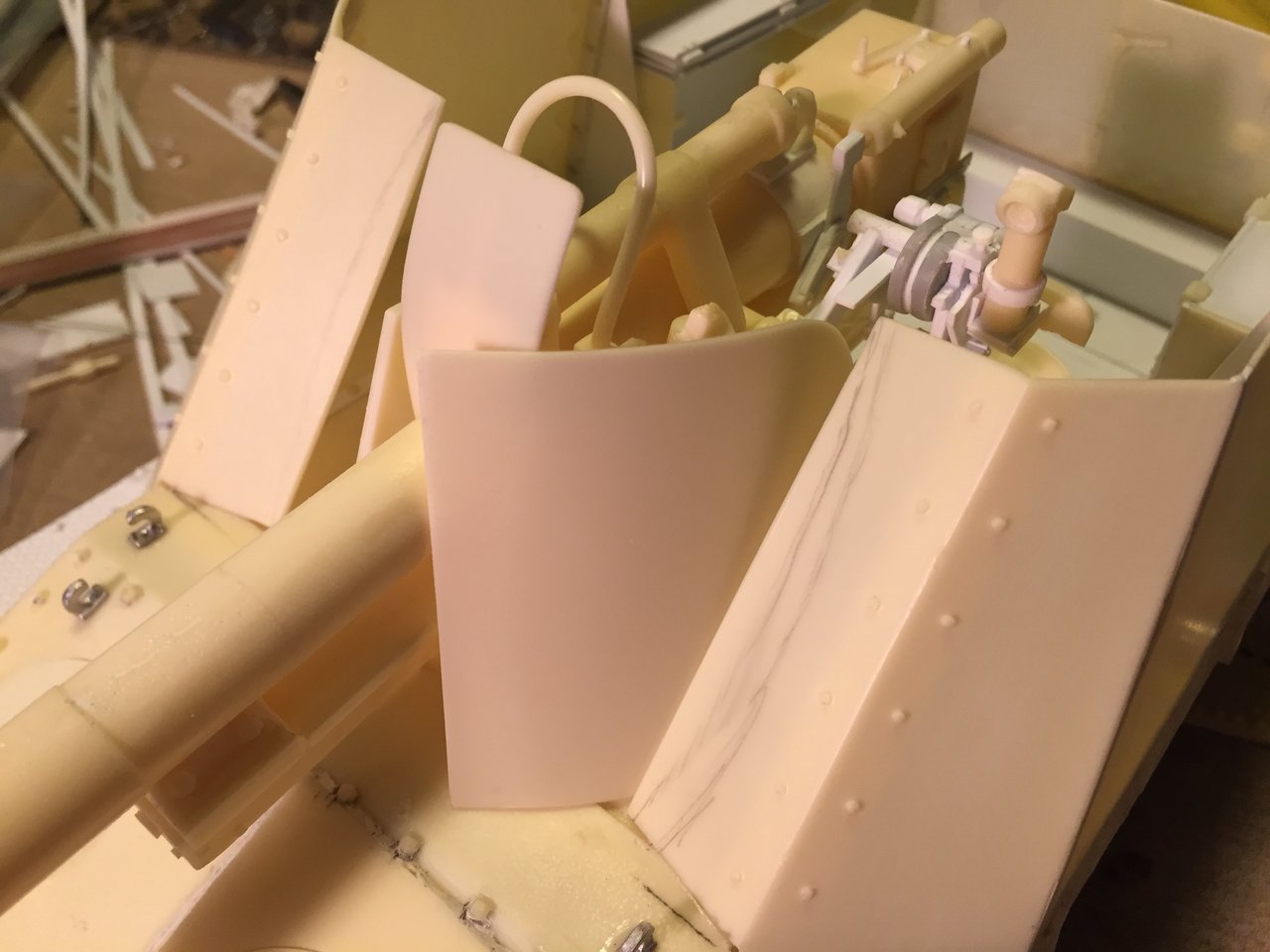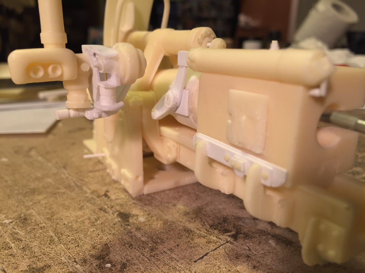 Now the right side had the same treatment. The molded-in details were erased and replaced with my interpretation of the pictures I could find. I think it is not too bad.