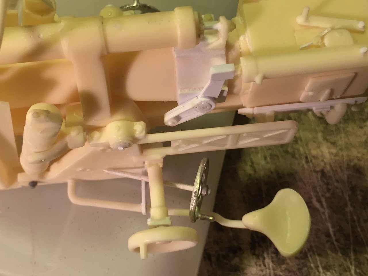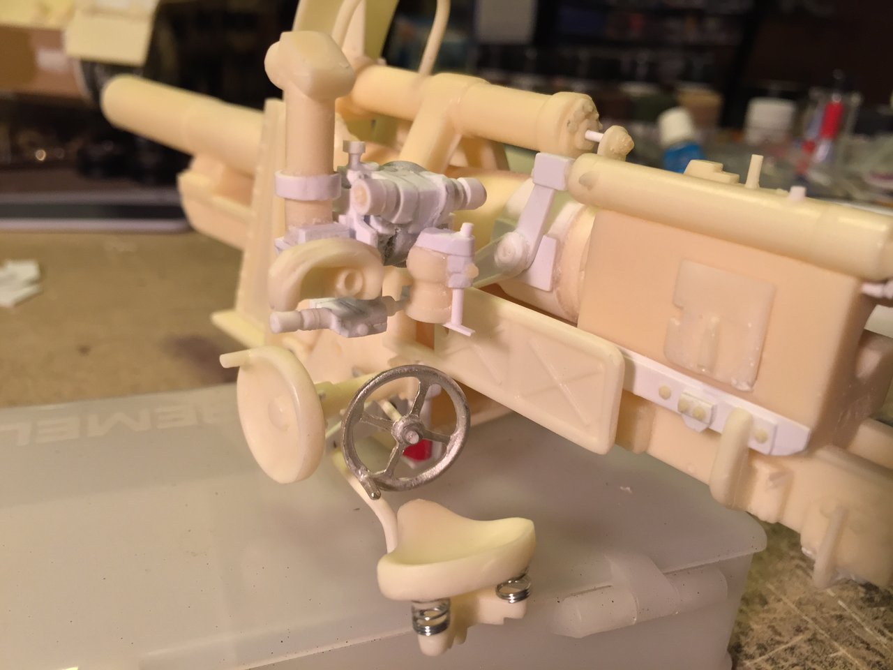 Now with the gun sight installed. I am pretty satisfied. Once fine tuned, polished and painted, it should look very good. It is much better than the kit parts and also my first attempt at the gun sight. It was a good decision to scrap it and take the time to do a better job. Springs from a pen were used for the seat.