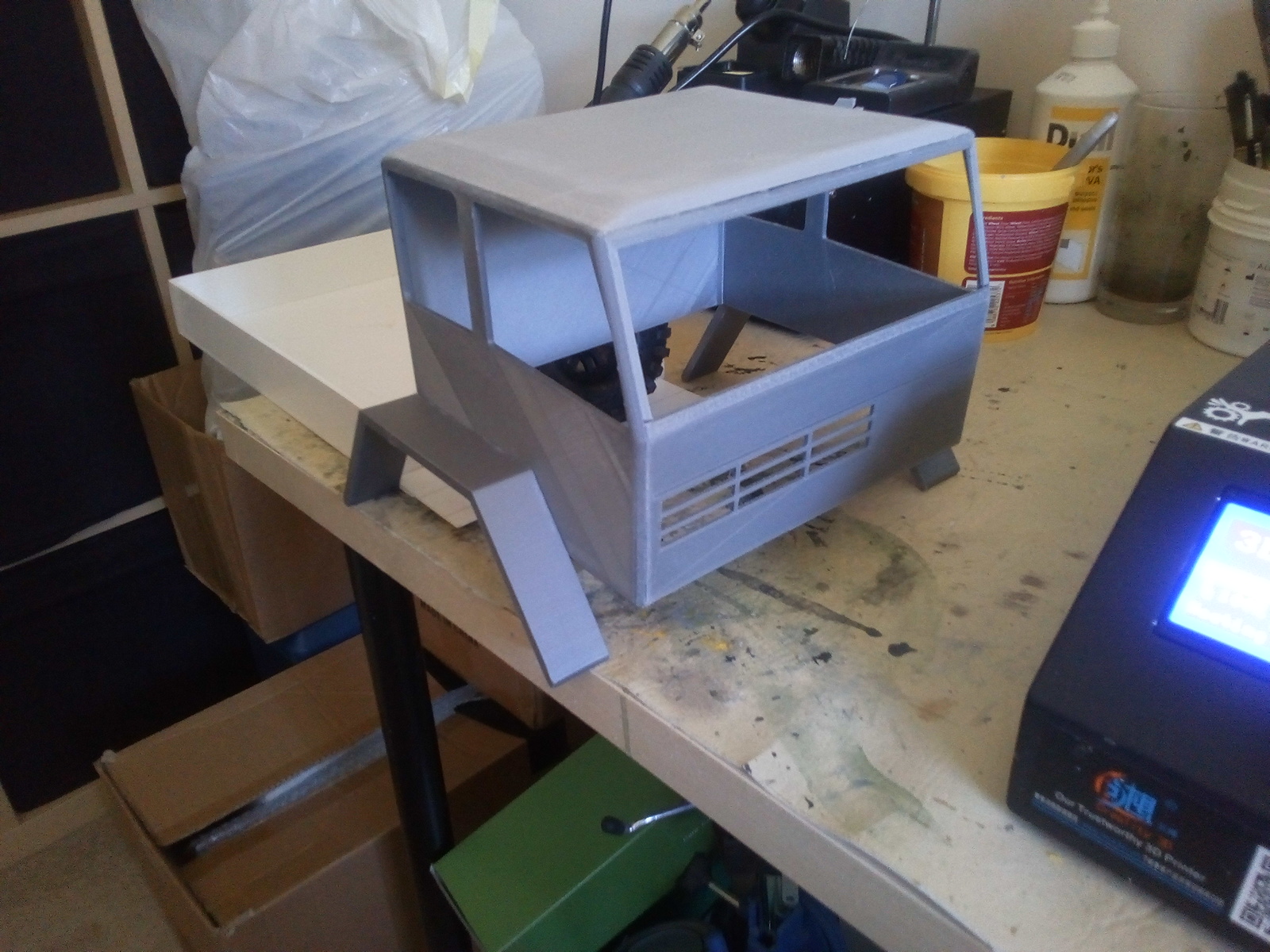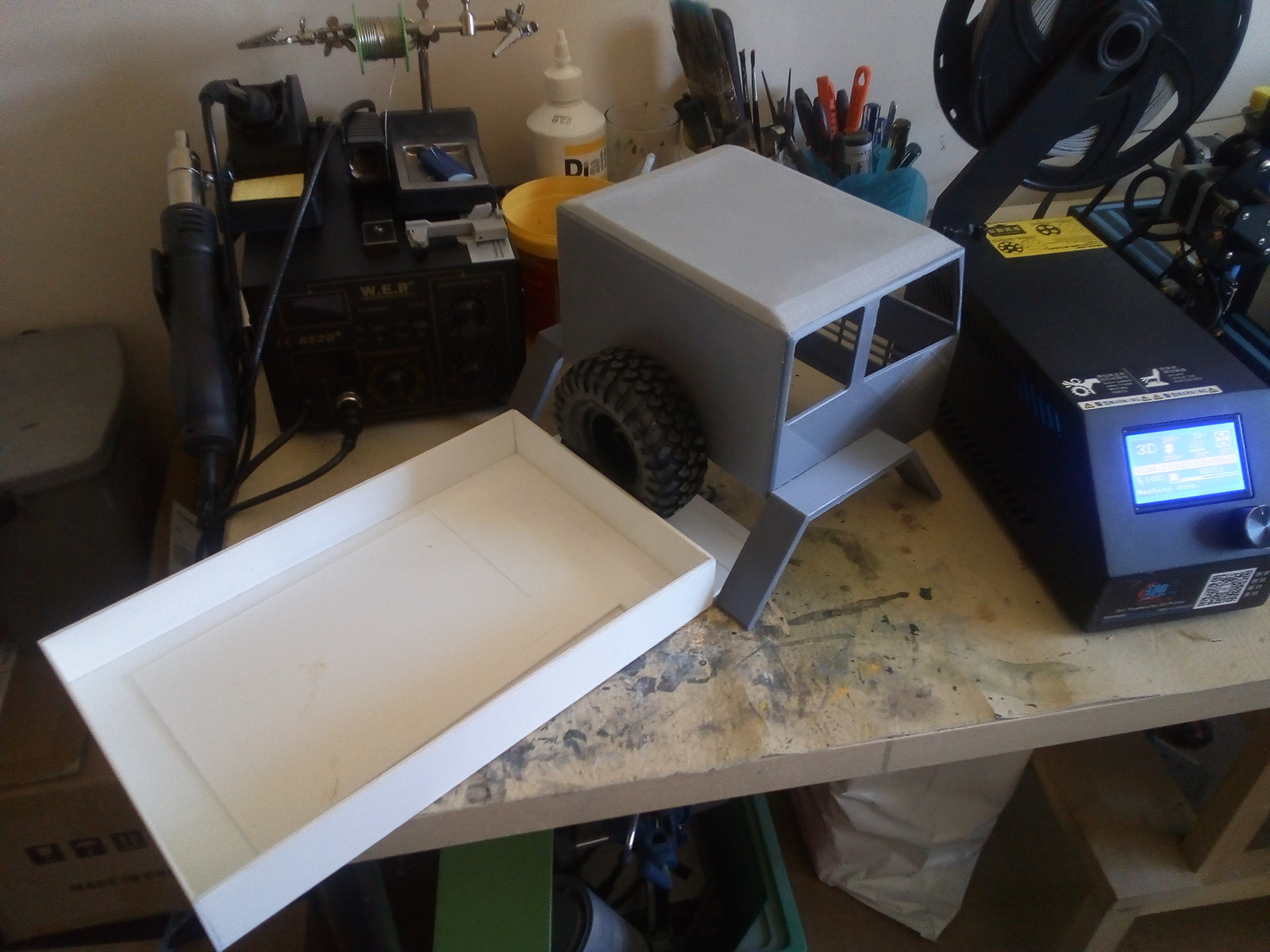 Two new reels arrived, and normal service was resumed. The cab is done, just doing the bumper. It has taken hours and hours to print the parts as they are so large, but I am getting there. I'm using styrene for the rear as it is quicker than printing big flat panels. I have a new esc coming that will slow it down a bit, and I'm hoping that I can turn it into an all terrain truck, rather than a crawler.