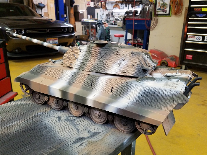 Zimmerit is done - YAY! And the track hangers are installed. Getting seriously close to painting.