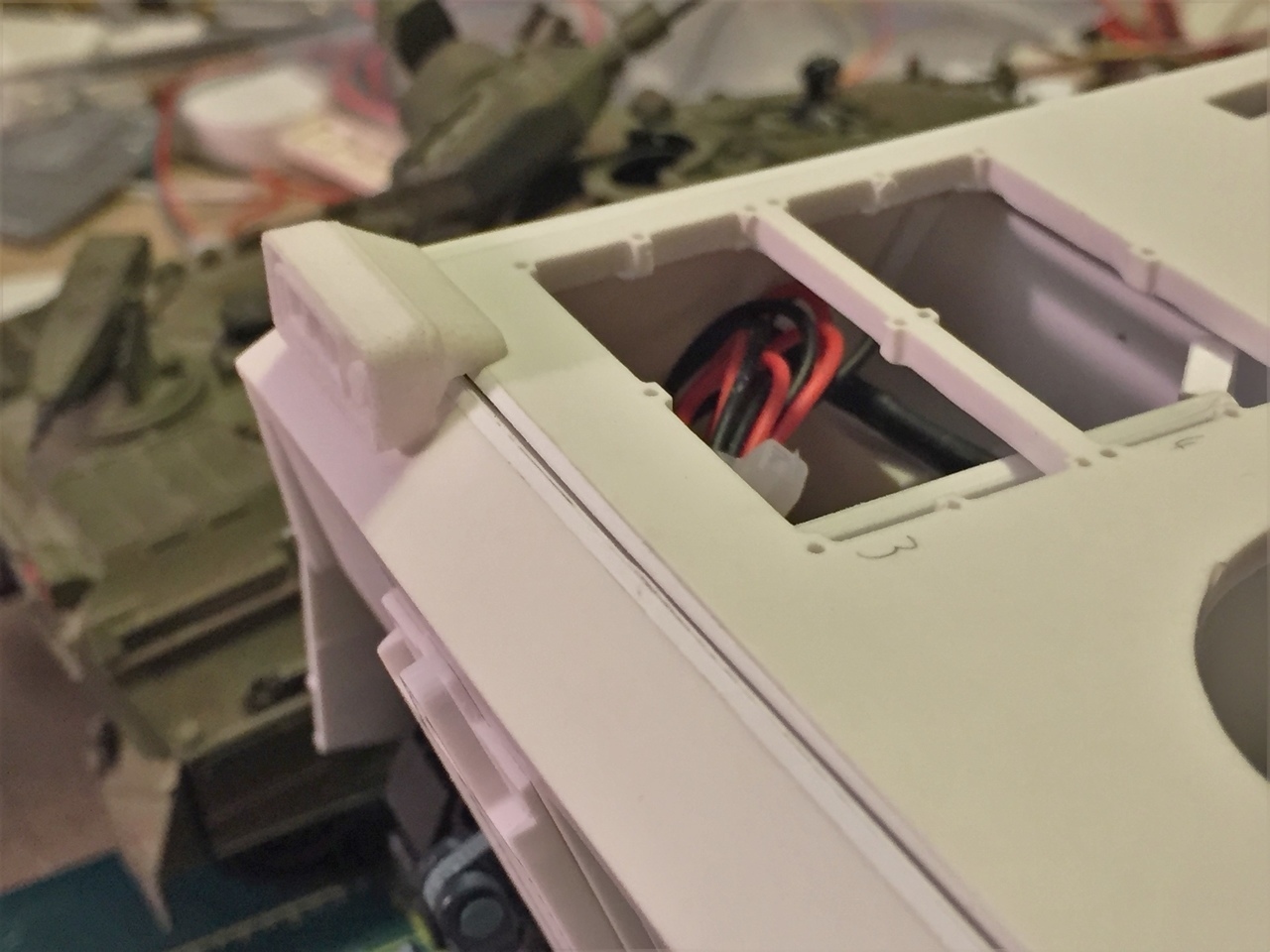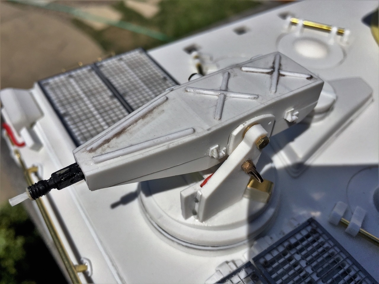 Next step is to determine if I can bring some rotation to the rear MG turret using a servo hidden below the right engine grill. I'll see if I can manage something that works.
