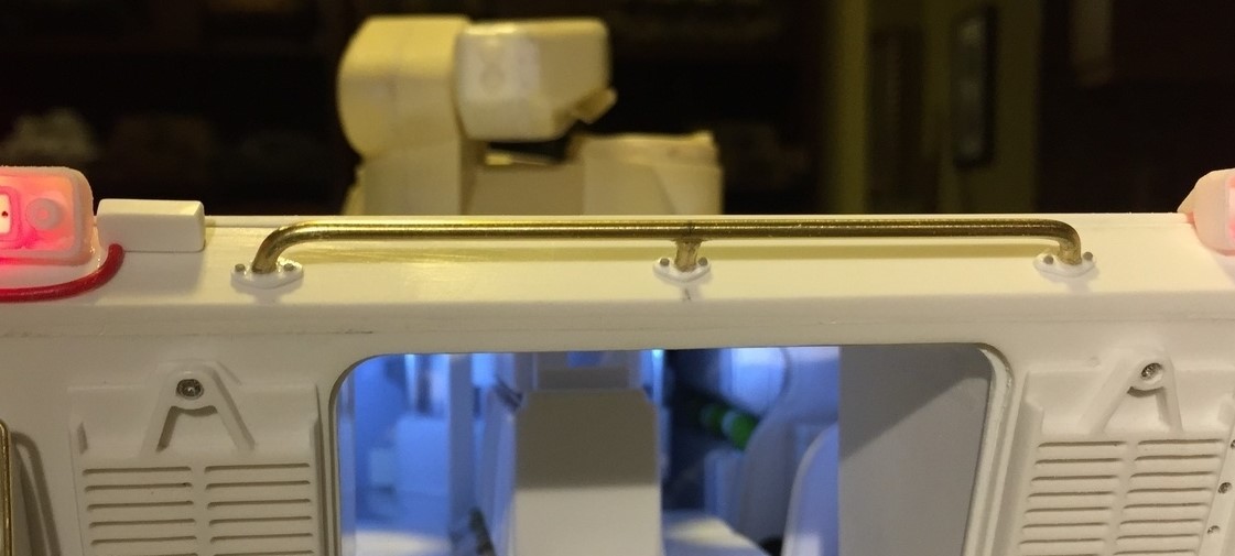 The tail lights are a bit tricky to install. This is the closest method compared to references. They are not glued to the removable top part so they therefore also act as a holder for the top. Not bad they need to be firmly glued to the angled plate. The gap in the middle side of the tail light is normal.