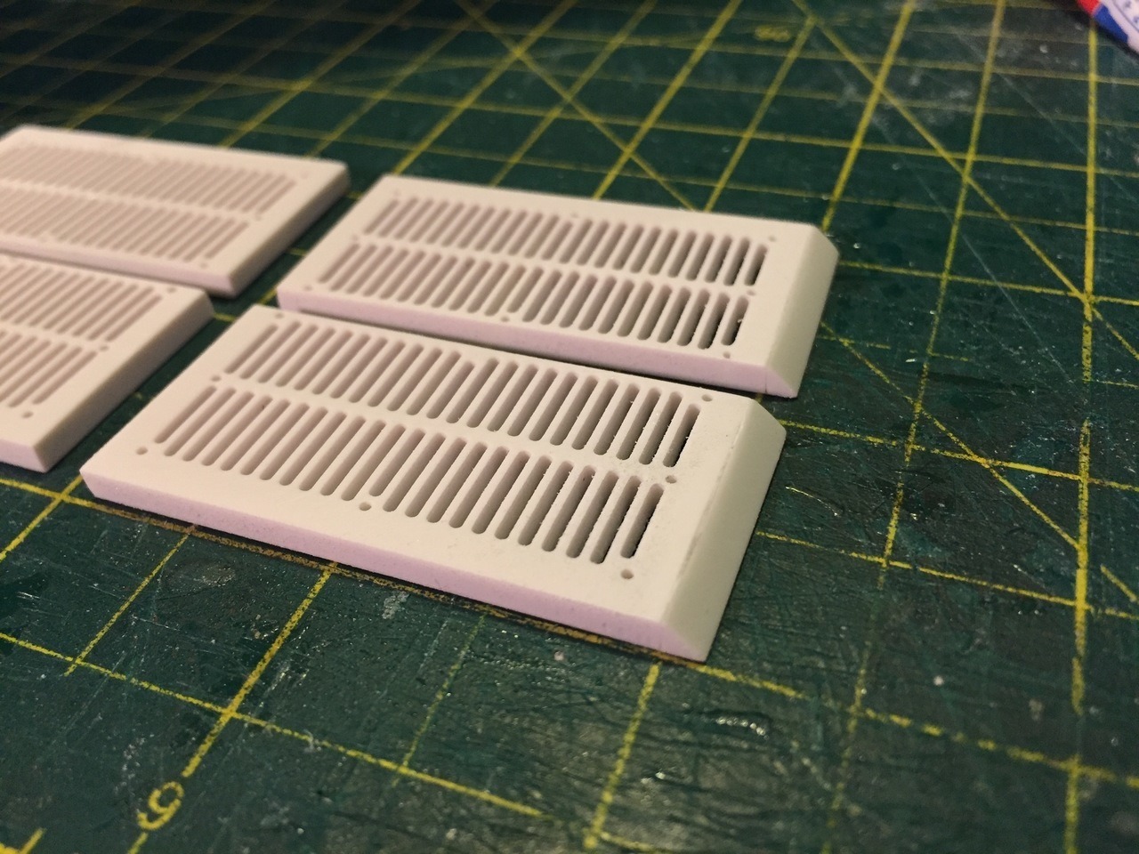 These are the basic parts provided for the engine grills, that's not much but it is a good base. It is tempting to just glue them on top of the rear deck and move on to something else but that would not make an accurate model.