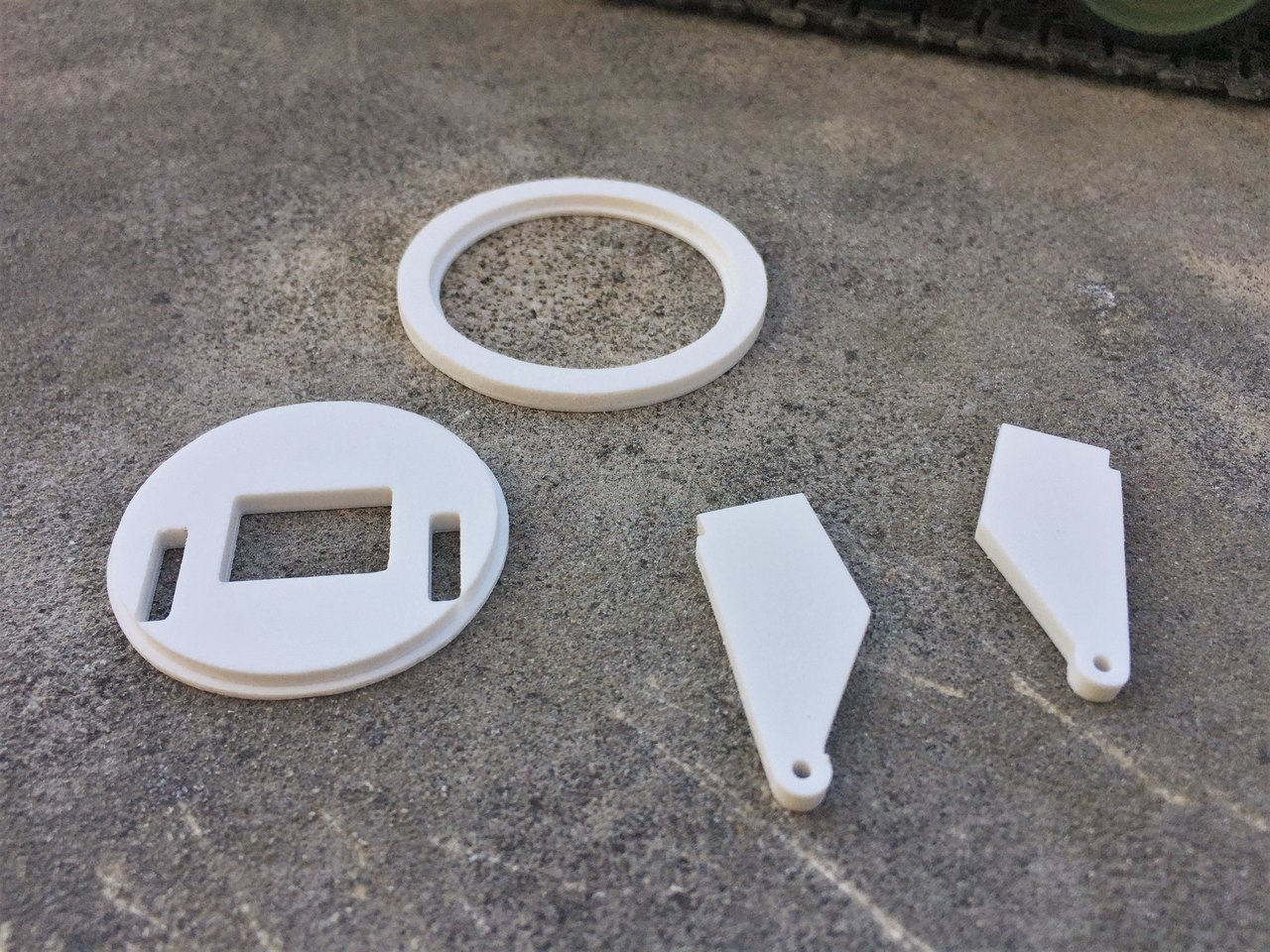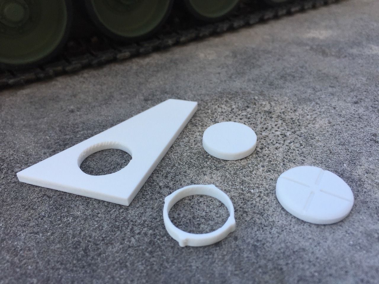 These are the parts provided for the central apparatus. My guess is that it is through it that the fuel tank below is filled but it is present only on the 1A1 and 1A2 version. Referring to the first picture above, you can see it requires a lot of work to get it close to the real thing. It also need to be made thicker.