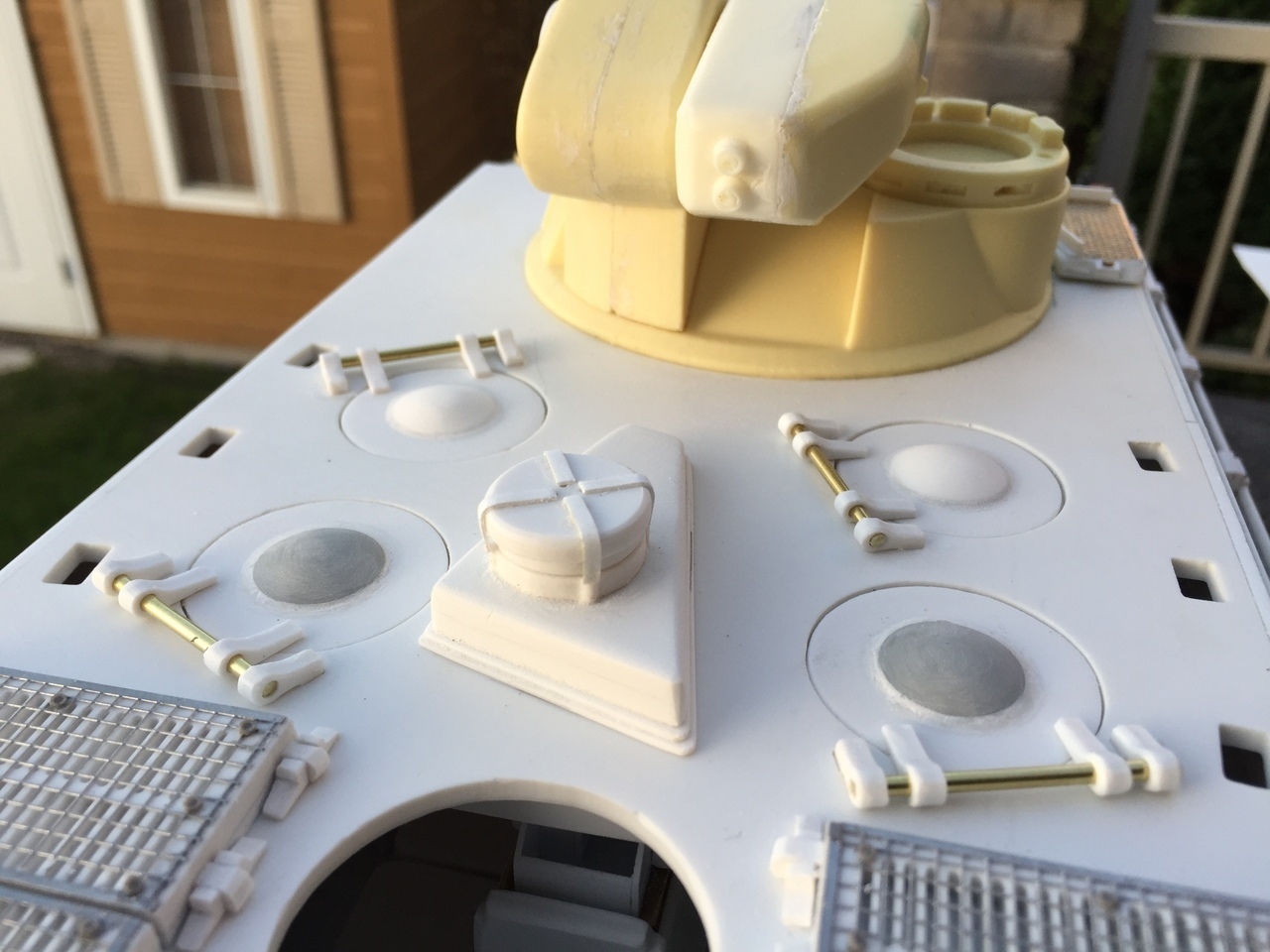 Next step is to detail the exterior of the main turret, with hatch, smoke discharger, IR unit, etc.