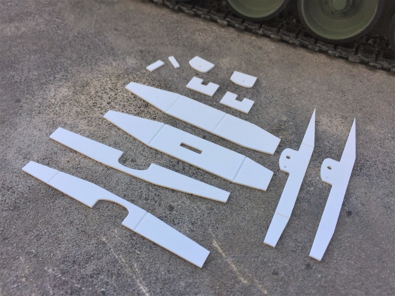 I started earlier to give them some angles but I quickly realize the parts are not think enough so they need another plasticard layer added. And then it took me a while to figure out what I would do to represent the metal grill to put on top. I ordered a set of Tamiya Tiger 1 PE grills and modified them the best I could to fit to fit the Marder.