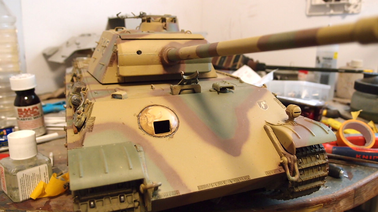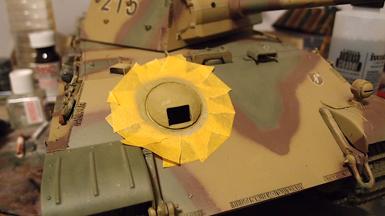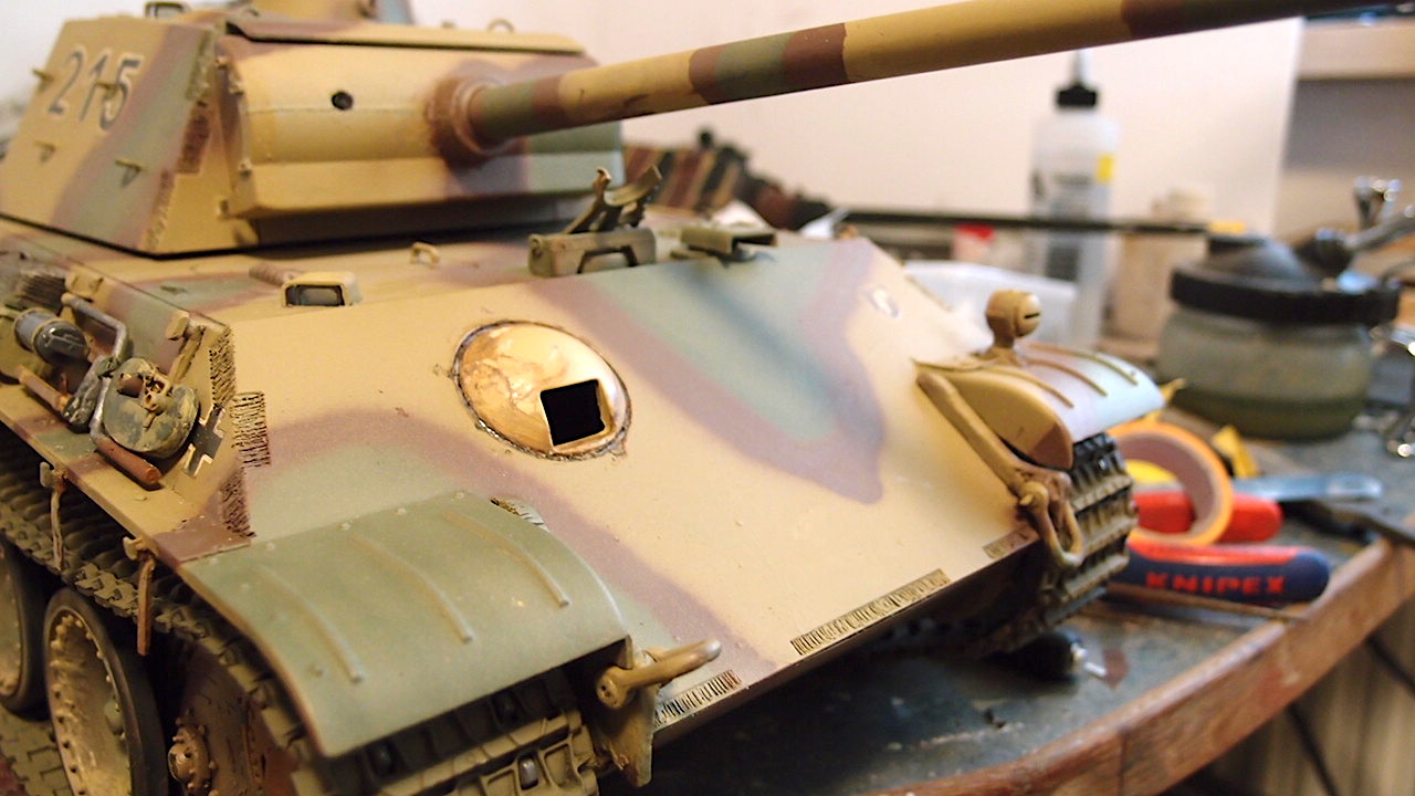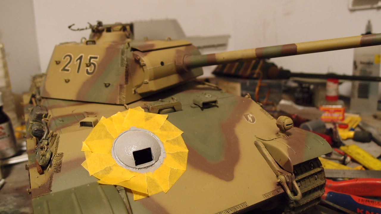 When you hit a brick wall on a build what next. Go and fix something that annoys you, this time its the HL armoured mg ball cover. As on the Taigen Panther its the wrong shape ,far too rounded and the cutout is at wrong angle and smaller. Tamiya to the rescue an easy fix , only one colour to patch.