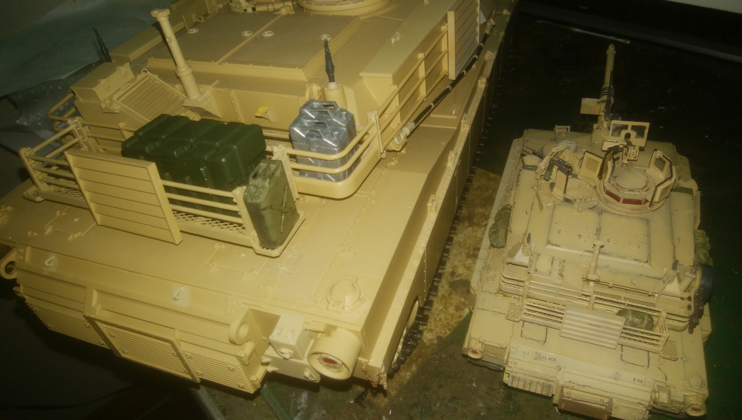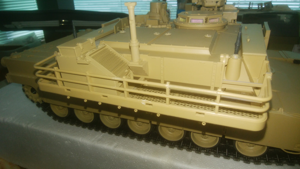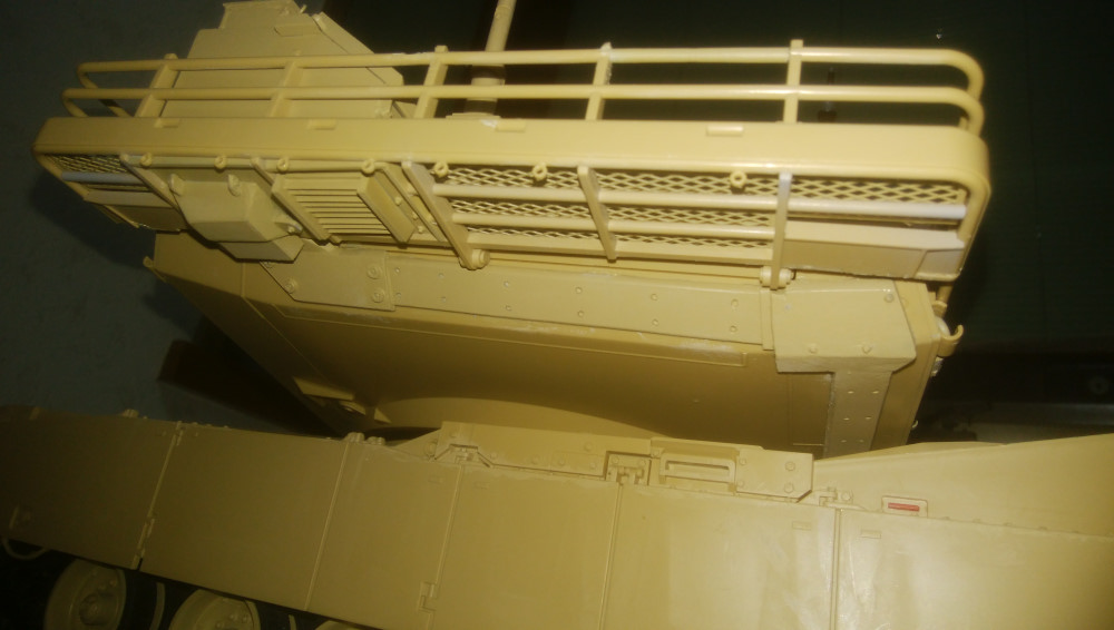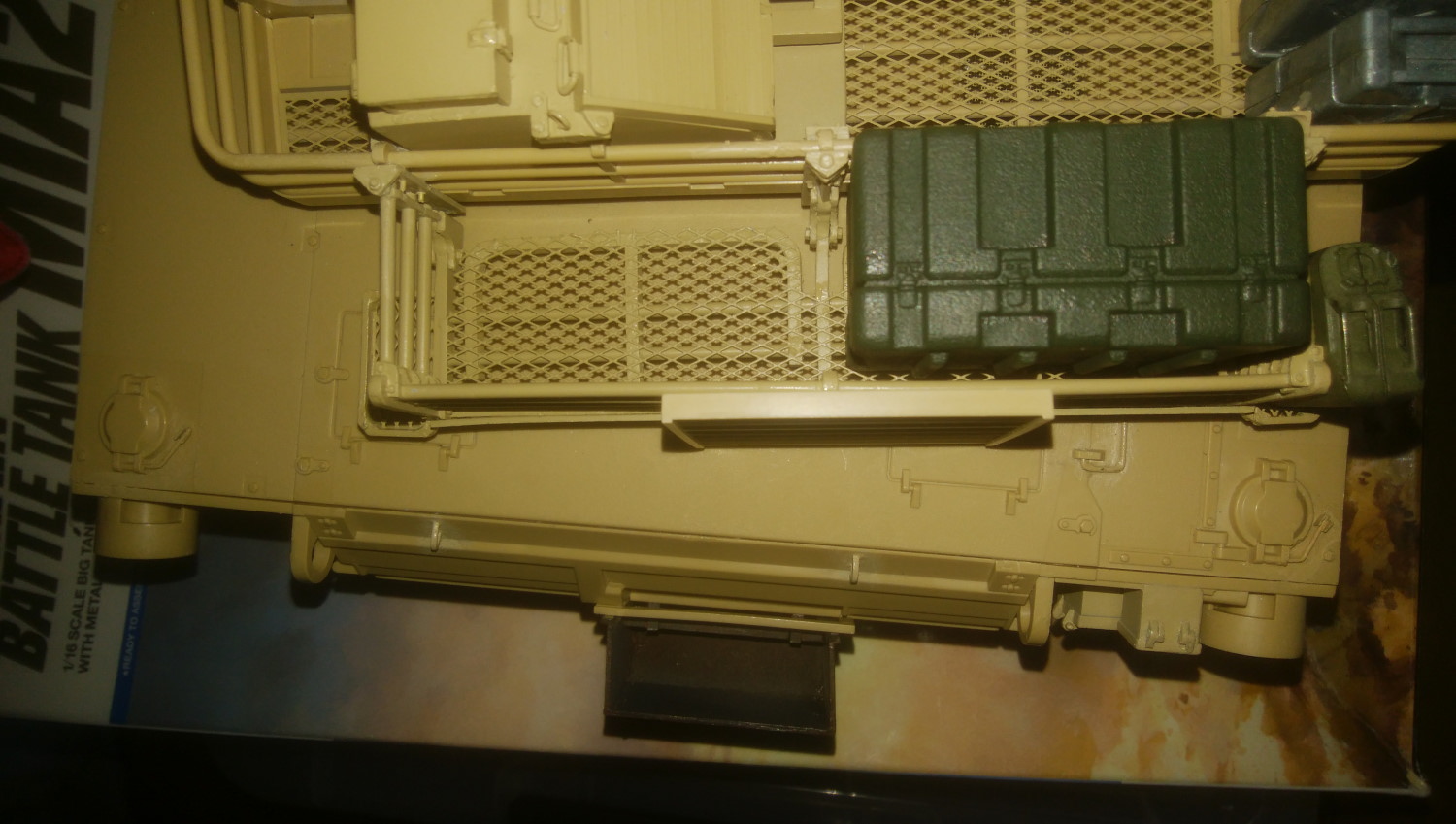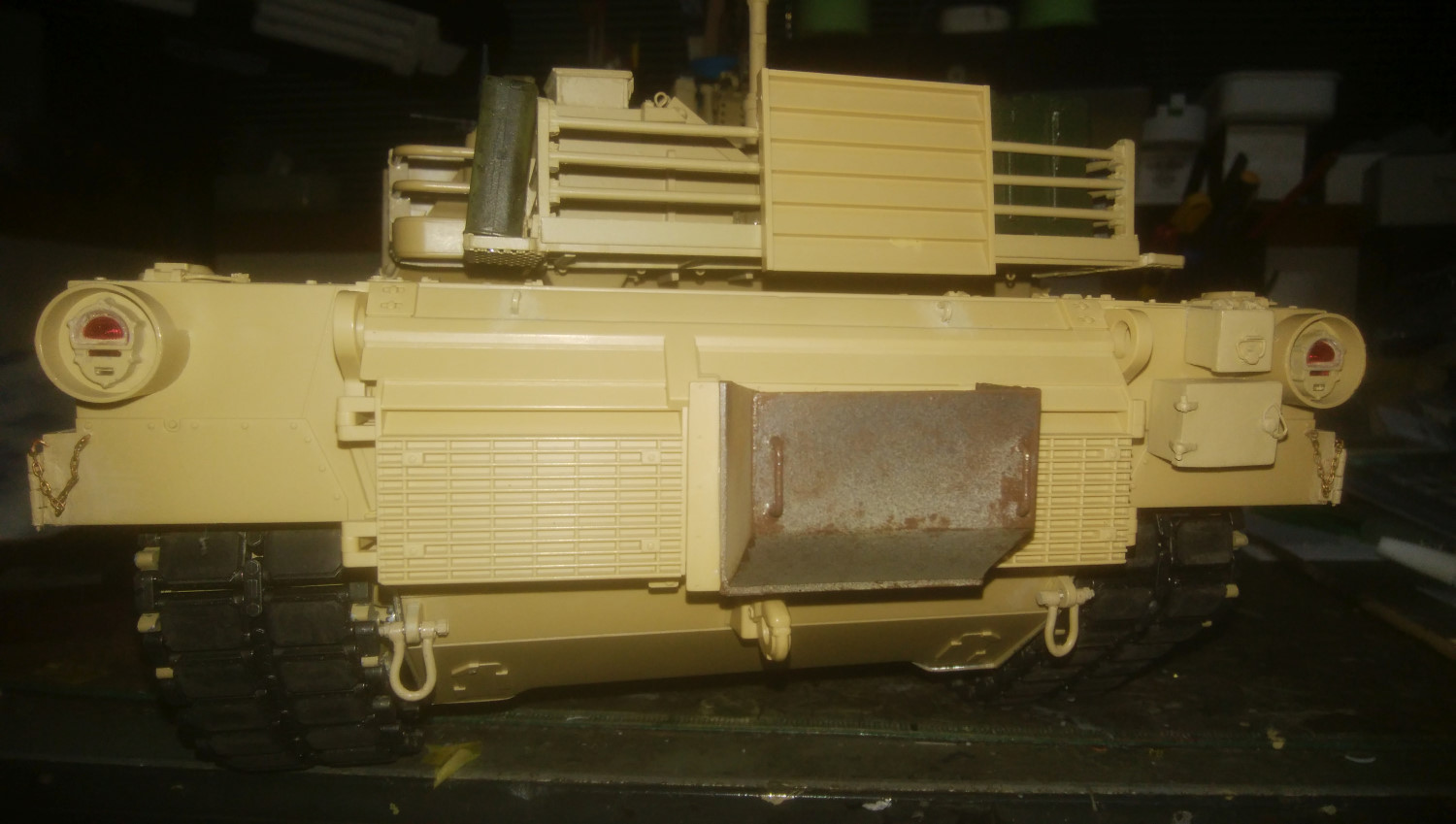 This M1A2 model kit has no shackles on the front and rear of the tank.
