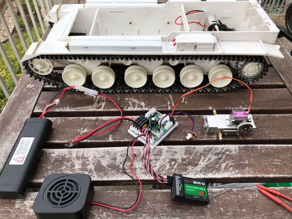 Some of the electronics being tested, such as the DKLM all metal recoil unit on the right. Main board is a Clark M26 Pershing TK-22.