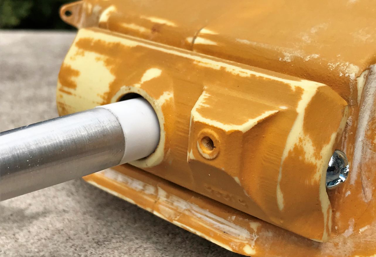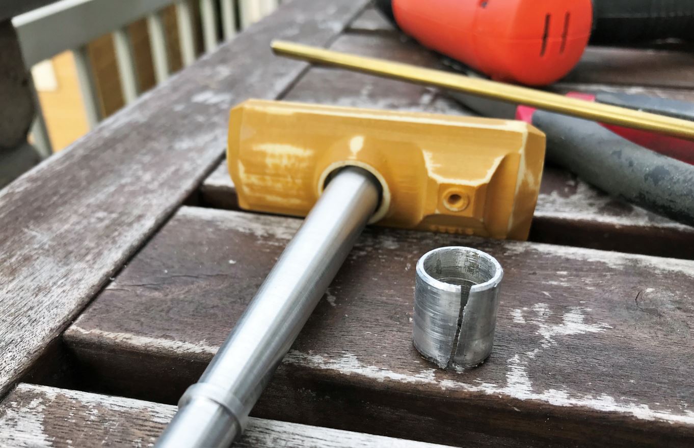 The Tank Modellbau L7 105mm gun barrel is designed for a Tiran tank converted using a Hooben T-55A. It is of excellent quality and is build and sold on request. A custom made mount is required to fit into my DKLM recoil unit. It is also too short somehow so a mixture of 6, 7 and 8mm tubing is required.