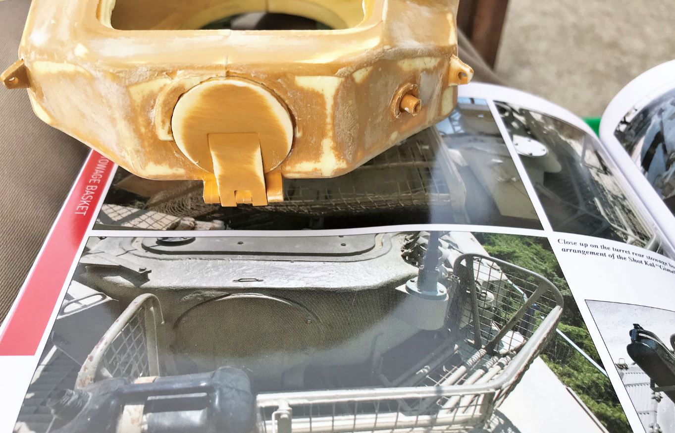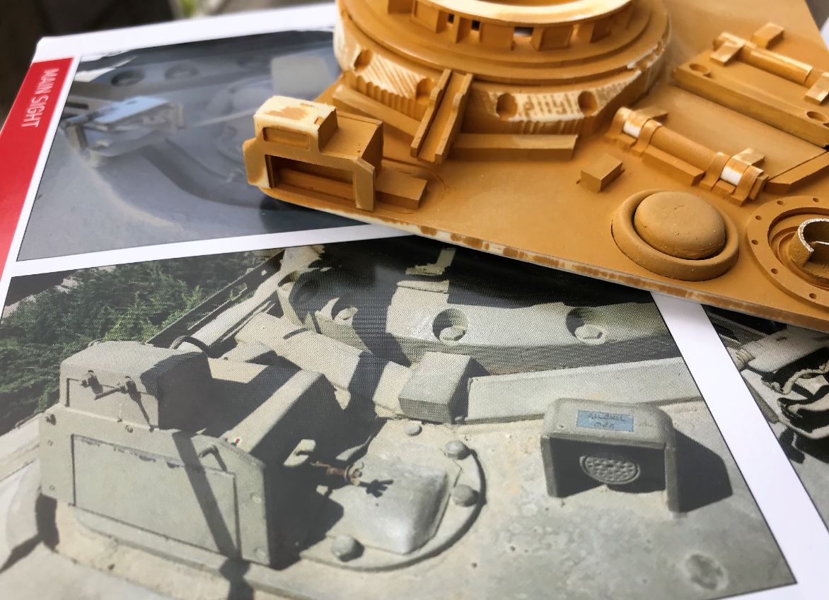 Be aware that the AFV Club 1/35 Shot Kal Gimel used as reference is based on a Mark 5 Centurion. My Shot Cal is based on the Ludwig Mark 3 so there are differences on the top of the turret that needs to be accounted for to avoid mistakes. Centurions of various marks and provenance were used for conversion into Shot Cal tanks. There are differences depending on the specific IDF tank you might look at.
