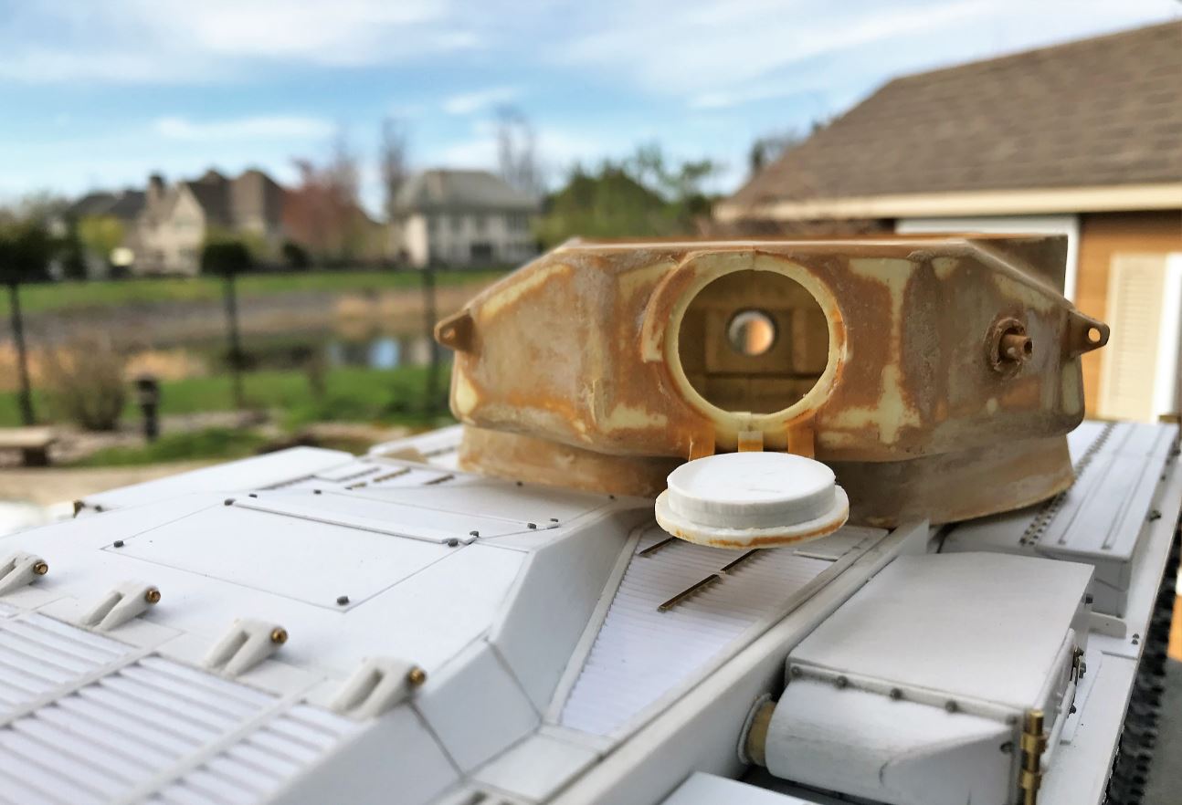 View of the 60mm mortar that need to be added next to the commander's cupola.
