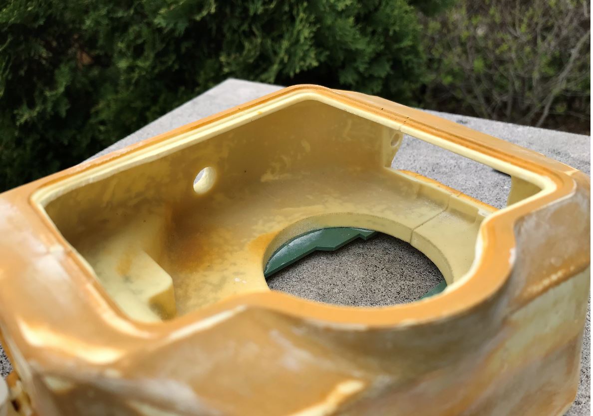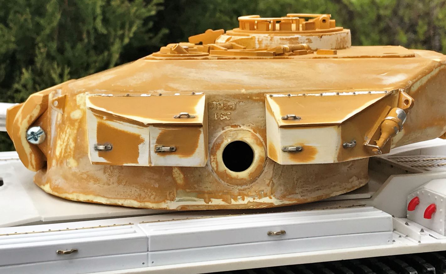 This is the empty turret deposited on the hull for analysis, in preparation for building and conversion into a Shot Kal Gimel turret. The previous owner did a good job with the basic components and did not seem to have the issues that I have seen other builders have with warping of parts.