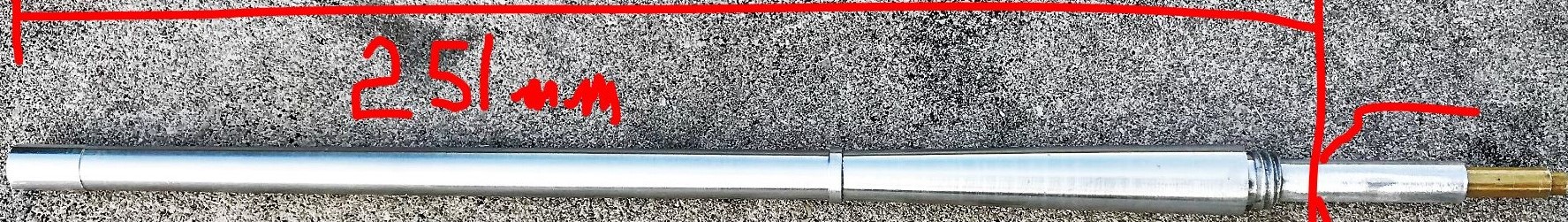 From the tip of the barrel to the mantlet, I calculated that the barrel needs to be 251mm long.