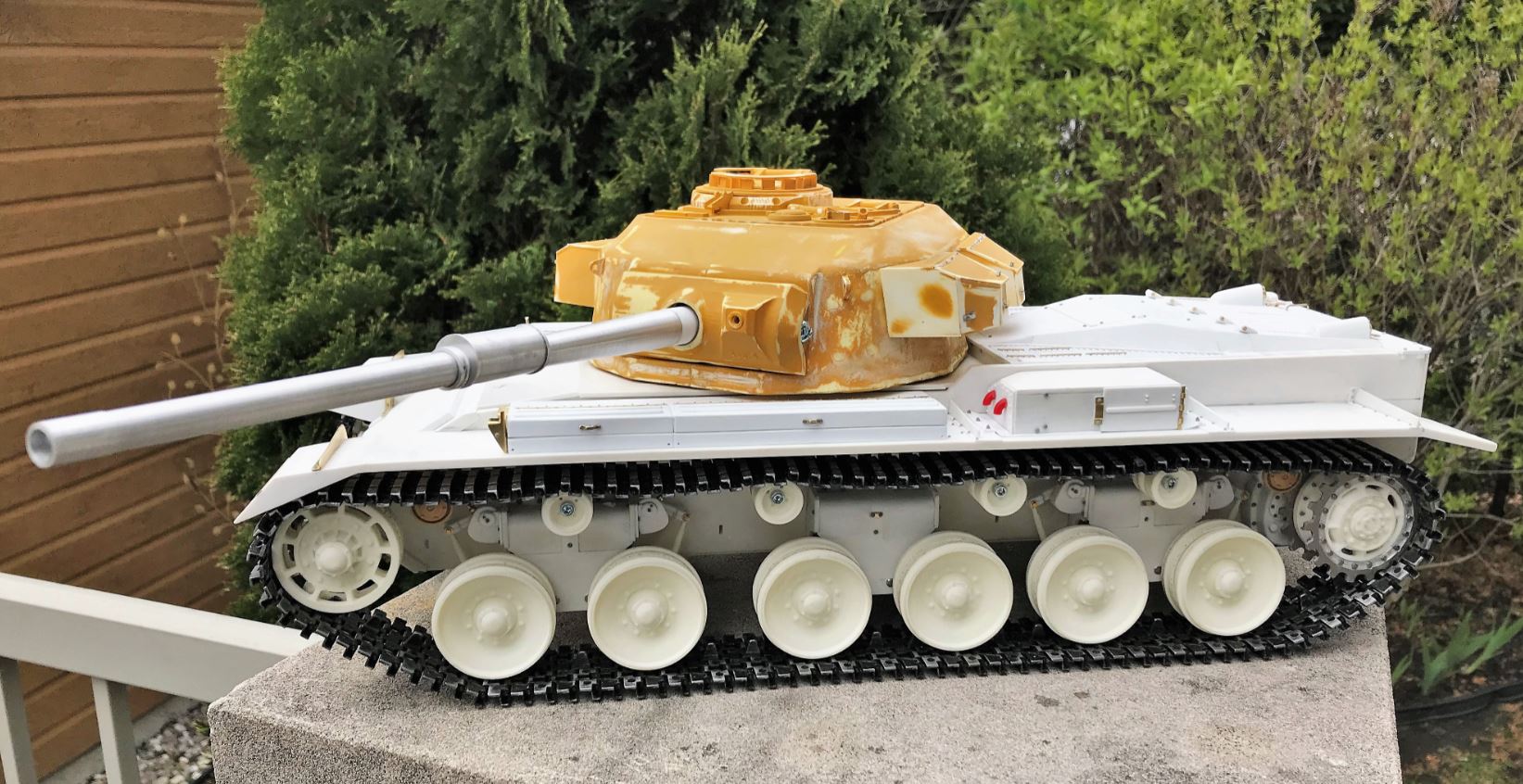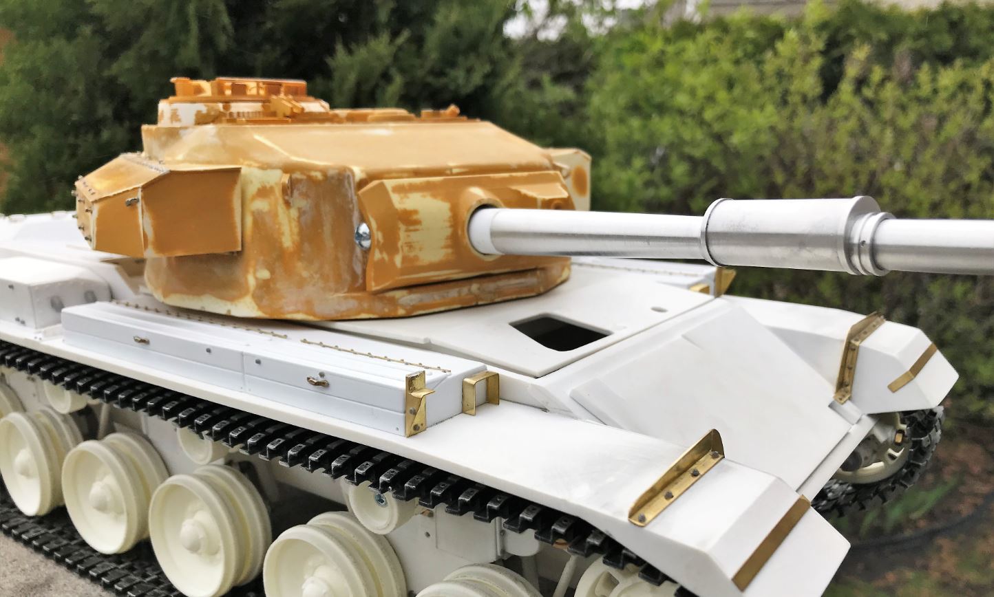 The integration with the Tank Modellbau L7 105mm gun barrel will require some engineering. No problem.