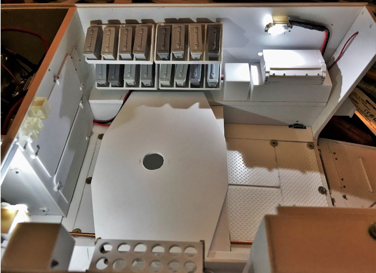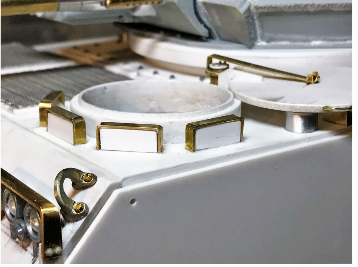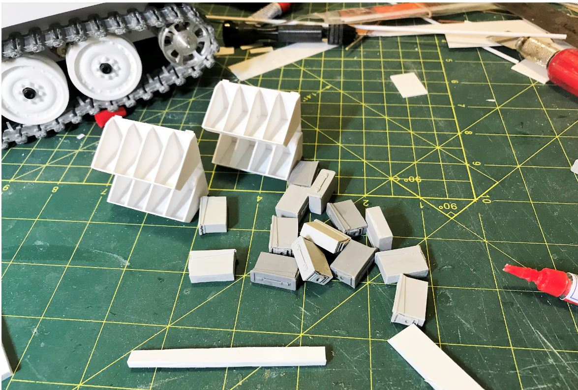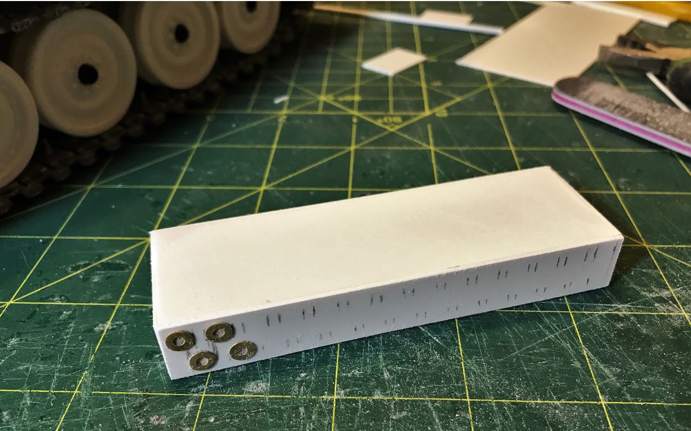 The module is made of plasticard. The ammo rounds will be represented by the bottom of the shell made up of brass washer. These will be installed after painting. Calculations were made to represent the 27 rounds.