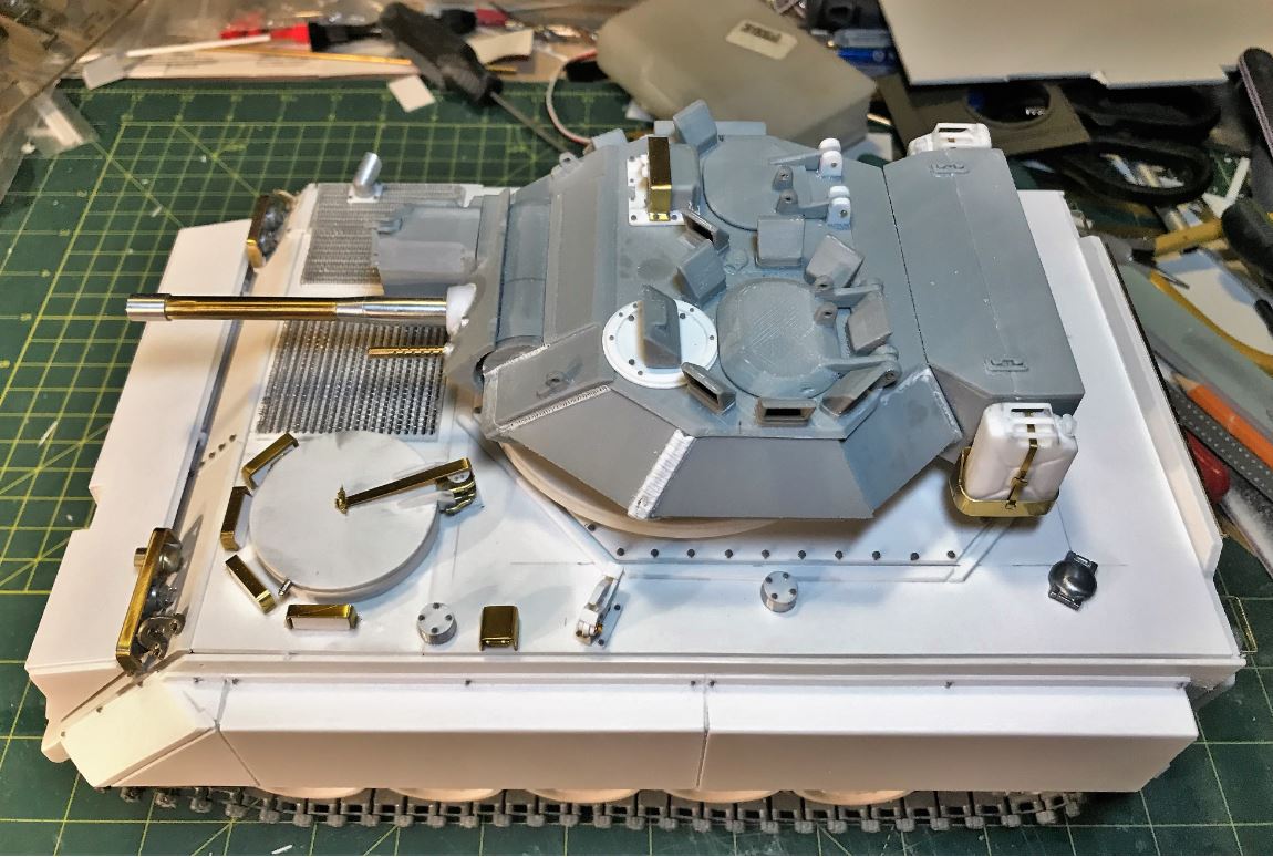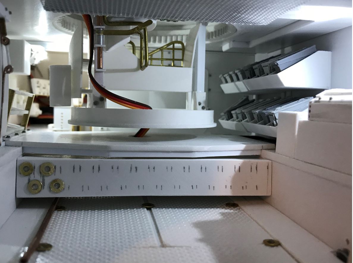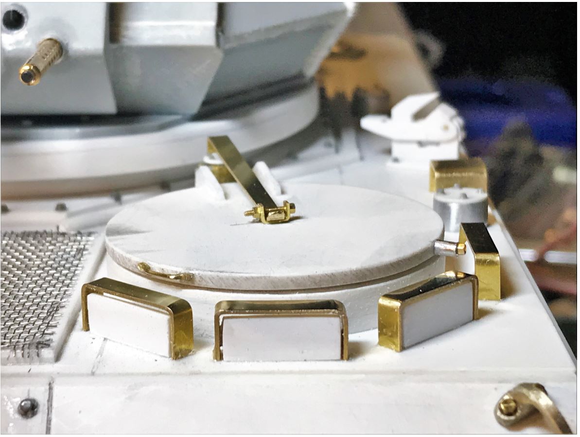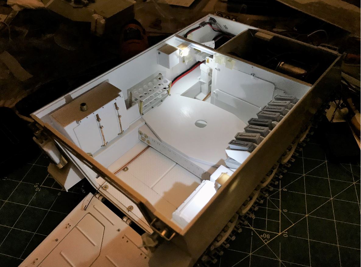 The ammo rack is temporarily installed under the turret for the fit. It will be installed after painting and after the wiring for the turret are all in place.
