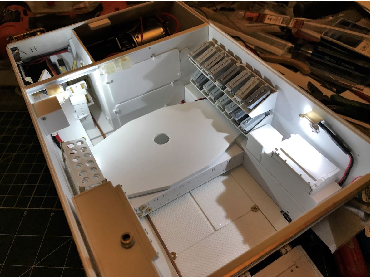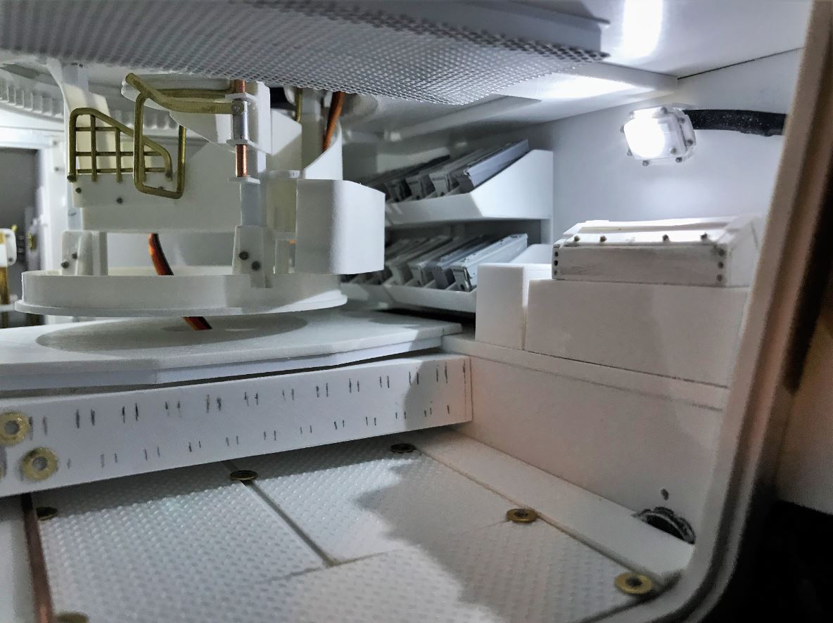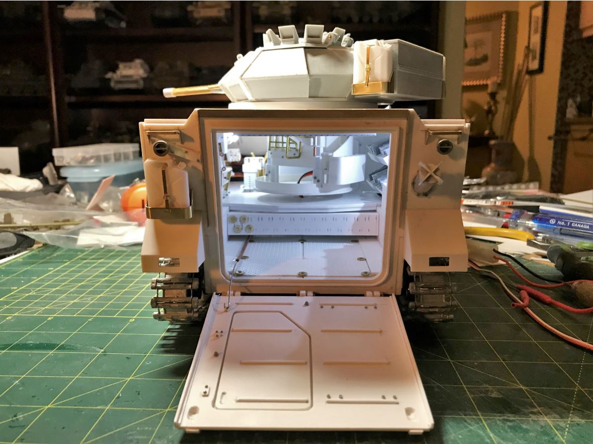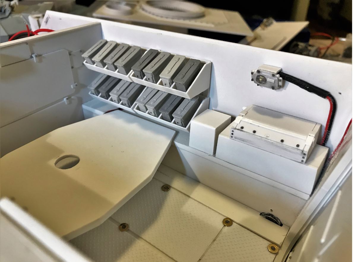 The ammo rack is temporarily installed under the turret for the fit. It will be installed after painting and after the wiring for the turret are all in place.