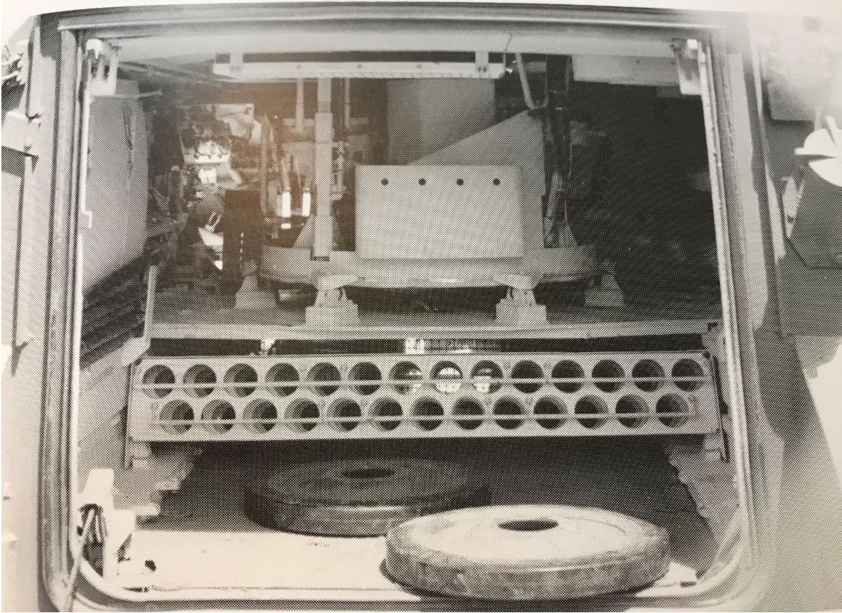 Below the turret is a ammo storage rack for twenty seven 76mm rounds for the main gun. Its inclined towards the front. Picking ammo from this storage unit required the turret crew to exit the turret.