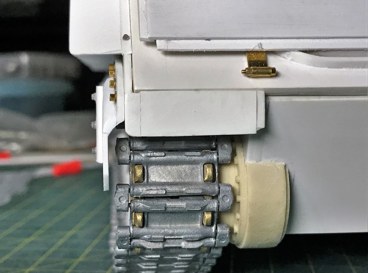 Showing the structure of the skirts and of the front mud guard. The parts provided by Ludwigs are not useful because they are too basic, have shape and dimension issues. The whole thing needs to be fully scratch built with plasticard strips, 1/4 round and square rods, Meng and brass bolts.