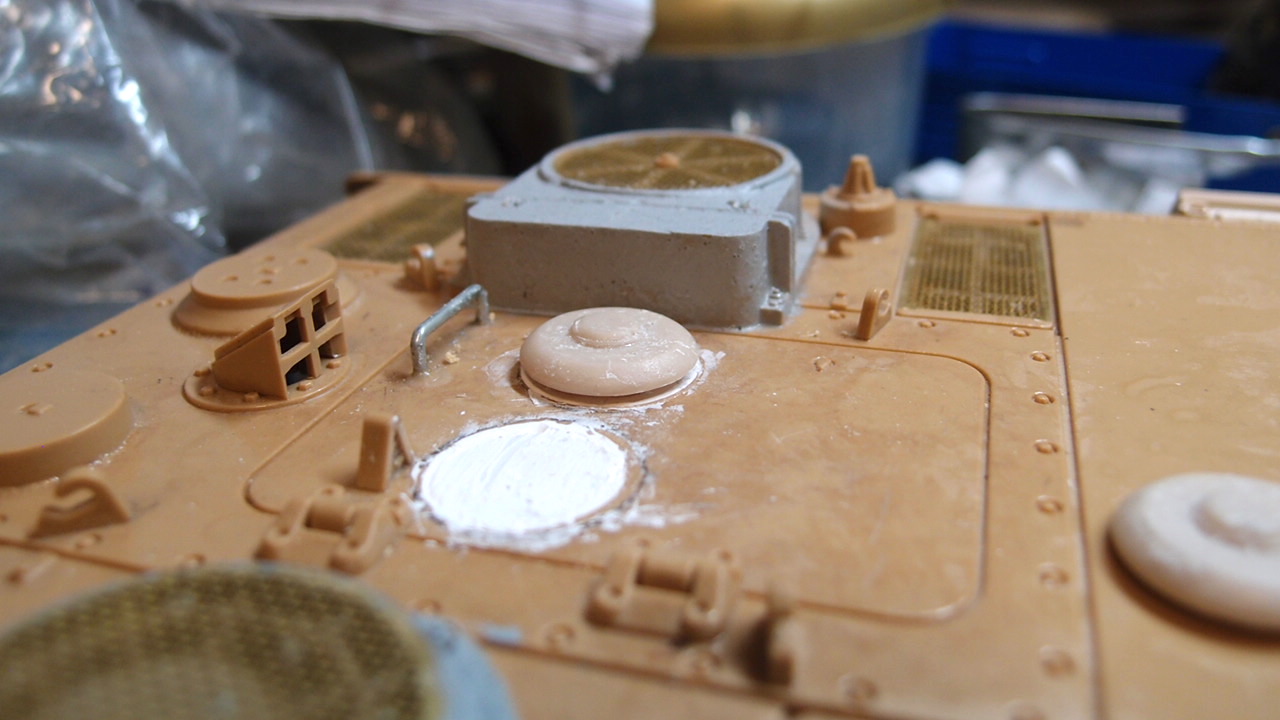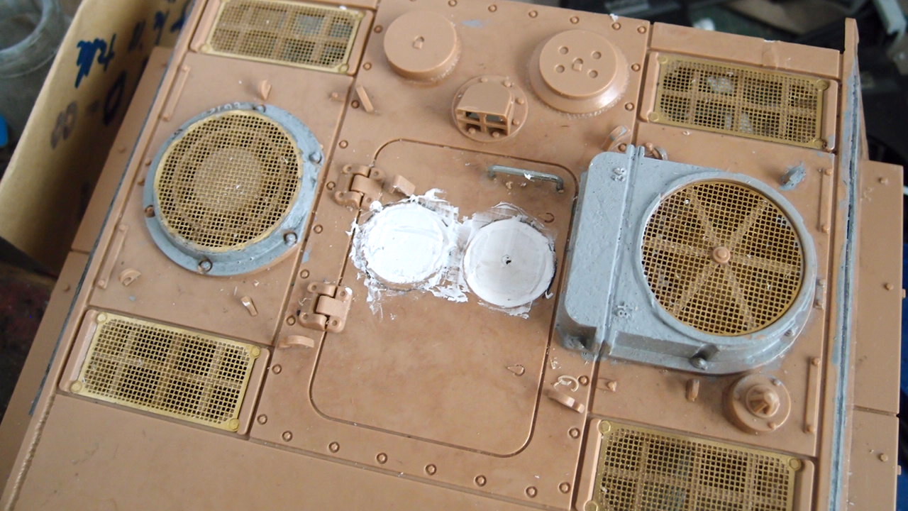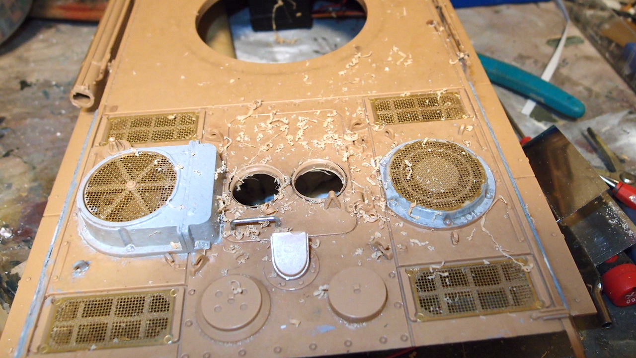 Back onto the hull , here is another little error on HL and Taigen that bugs me.. Covers for air filters are moulded onto the engine deck, should be raised to let air into filters. The F is a test run as the other Panther is painted, need to get a neat removal and fix sorted out.