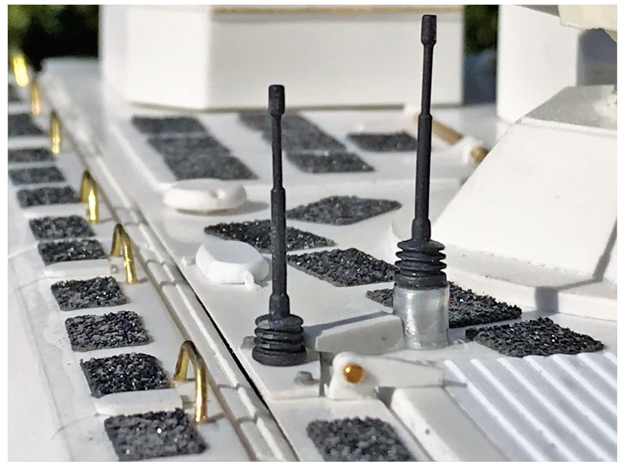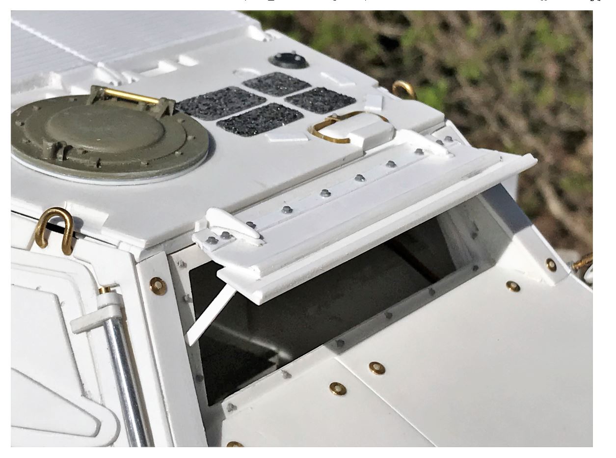 Overview of the finished cabin rooftop, with the hinges added for the engine grills and ventilation cover.