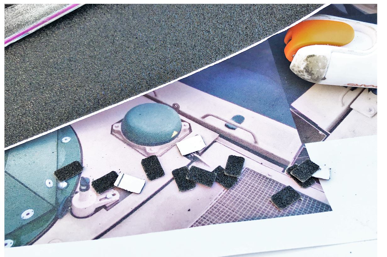AFV-Model sell non skid coating material on a self-stick sheet to reproduce the non skid plates on top of German combat vehicles. I am trying this for the first time.